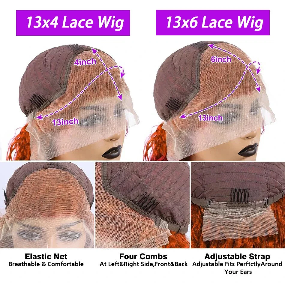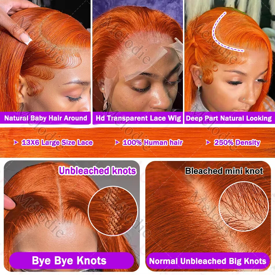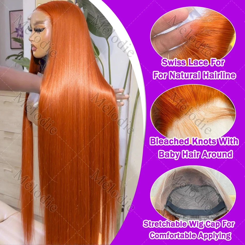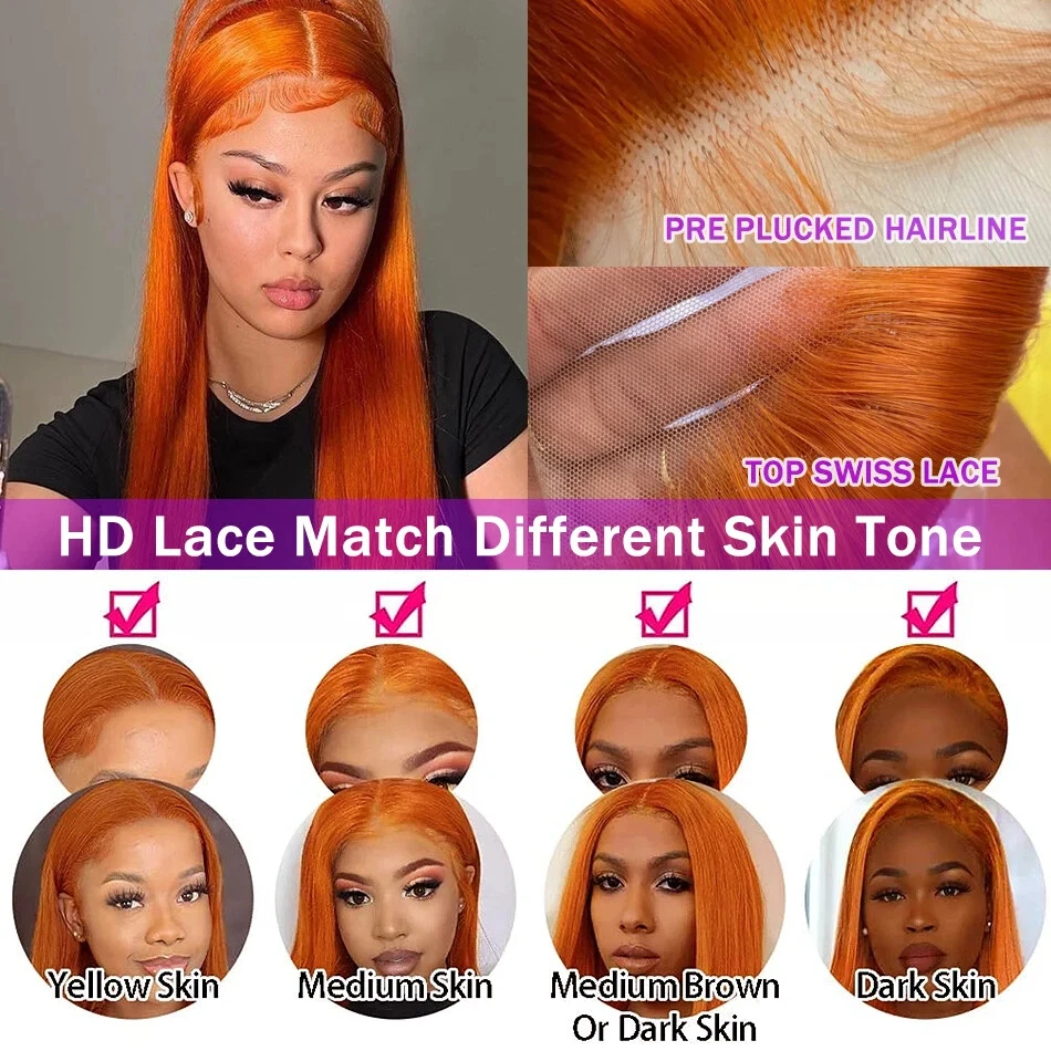 Straight Ginger Orange HD Lace Front Wig 13x6 13x4 Preplucked Human Hair for Women