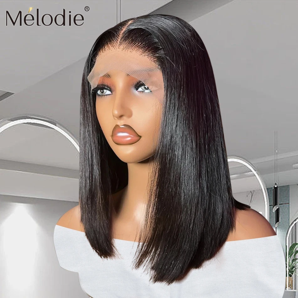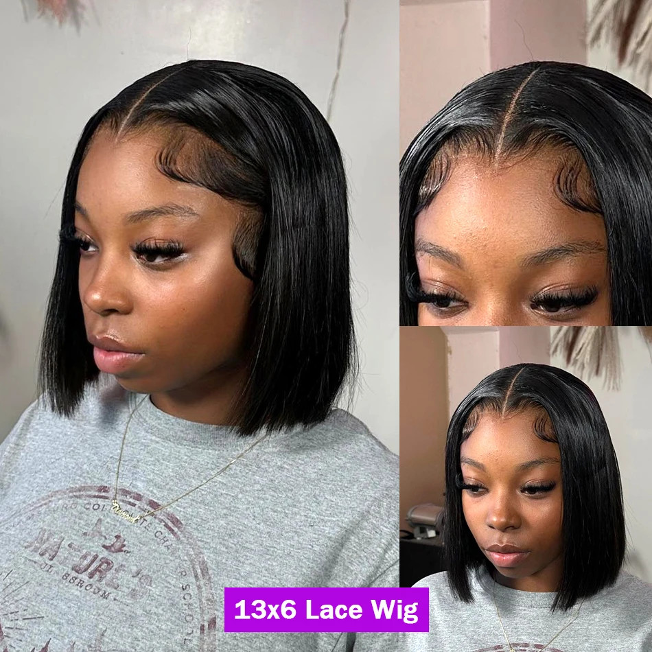 Straight Short Bob 5x5 Glueless Human Hair Wig with 13x4 Lace Front Pre Plucked