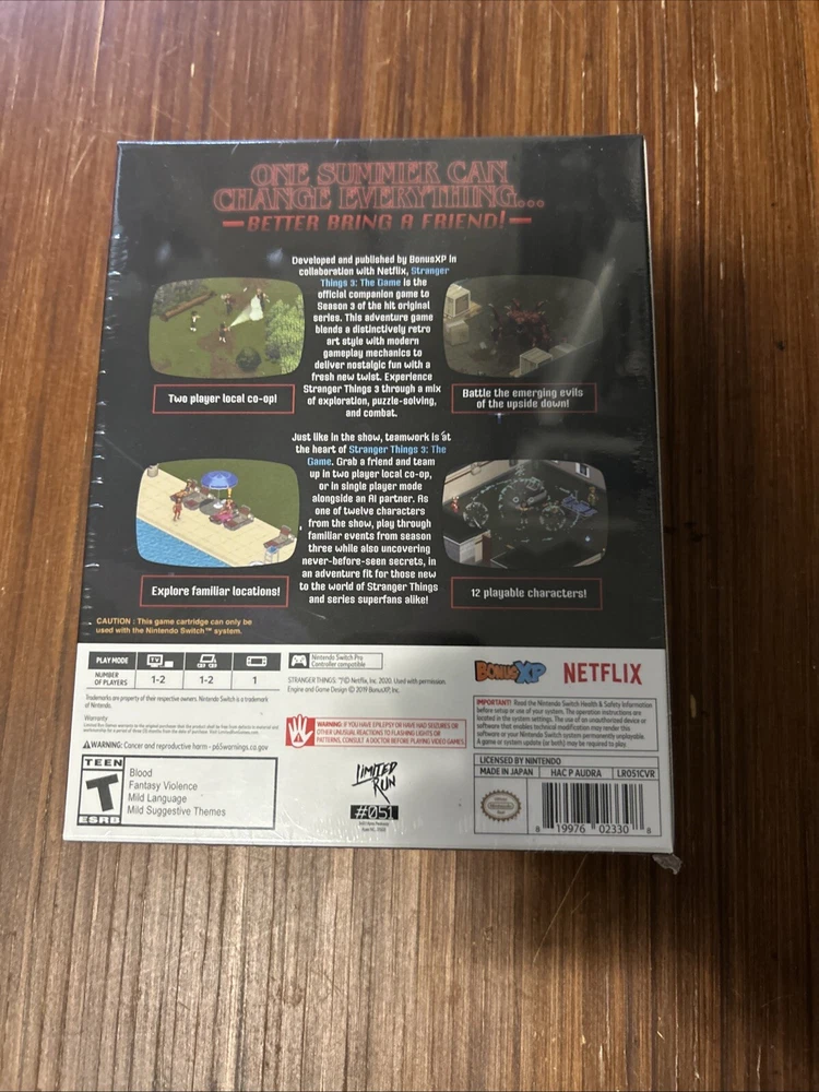 Sub-Genre: Fantasy Features: Manual Included, Collector's Edition Region Code: Region Free Publisher: Limited Run Game Name: The Thing Genre: Strategy, Survival Horror, Beat 'Em Up, Arcade UPC: 0819976023308 Platform: Nintendo Switch Release Year: 2020 Video Game Series: Stranger Things Rating: T-Teen gtin13: 0819976023308