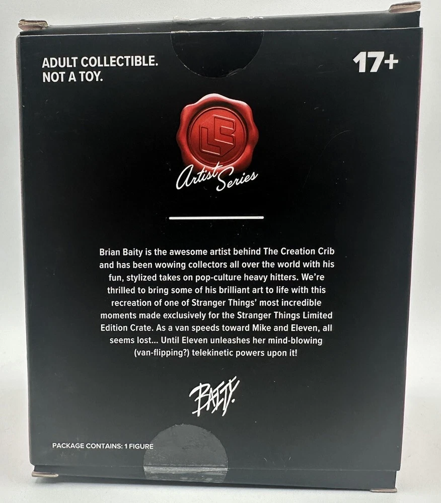 This Stranger Things Eleven and Mike figurine is a must-have for any fan of the hit TV show. Designed by Brian Baity, this exclusive Artist Series Lootcrate figurine features the beloved characters in a multicolor vinyl design. The figurine is perfect for collectors and fans alike, and is sure to be a standout addition to any collection. With its unique design and attention to detail, this figurine captures the essence of the characters and the show. Whether you're a fan of the franchise or just love collecting unique items, this Stranger Things Eleven and Mike figurine is a great addition to your collection. New but opened for pictures.