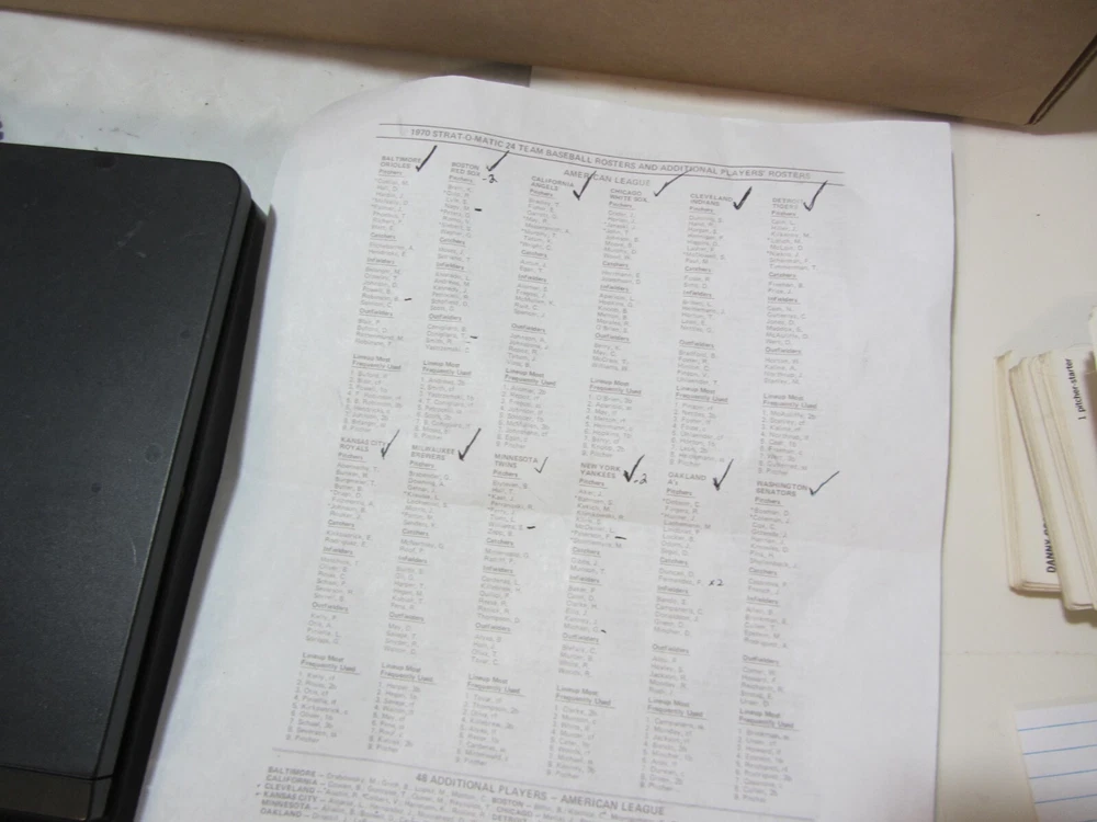 1970 Strat O Matic stack of baseball cards - 100s of cards! - decent condition vintage cards from estate - looks like previous owner sorted by team and league - LOTS OF TEAMS ARE COMPLETE ON THIS GROUPING - the entire set is probably incomplete though abundant and still valuable - these are pre-owned and stored for decades - you please make sense of these - you will get exactly what you see photographed! the "K3" photo simply tells me where to find your item(s) for shipping