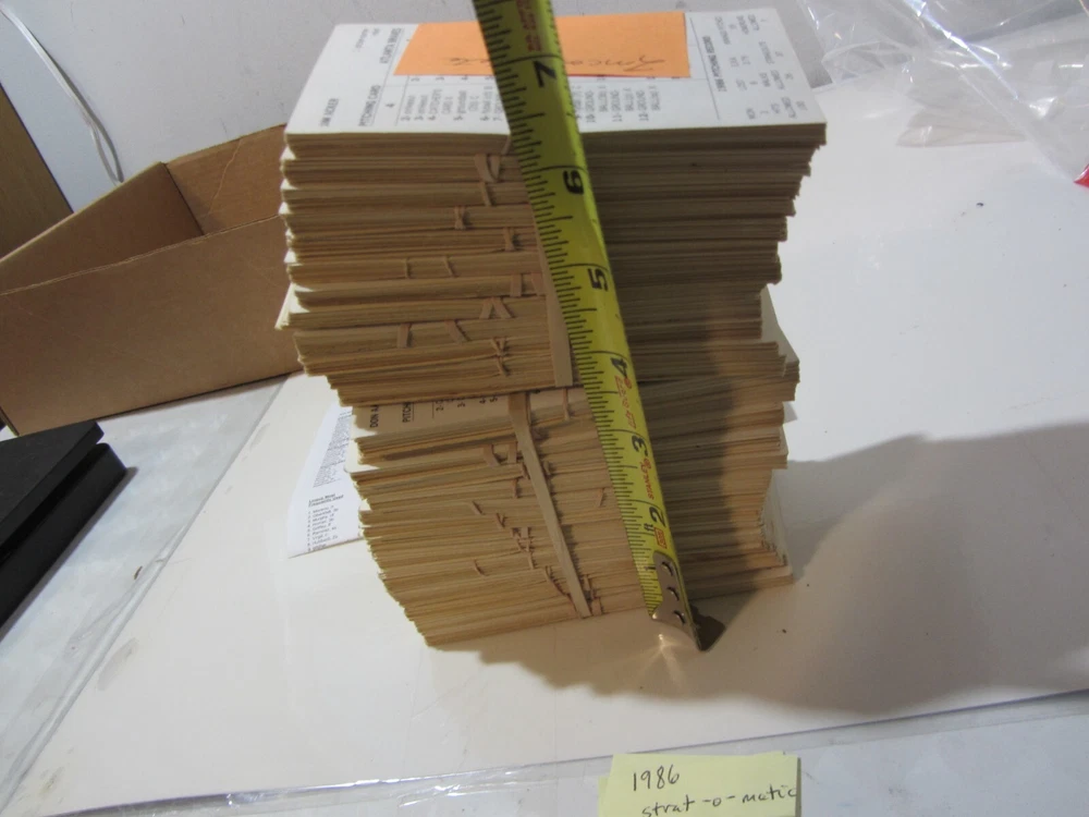 1986 Strat O Matic stack of baseball cards - 100s of cards! - decent condition vintage cards from estate - looks like previous owner sorted by team and league - these are incomplete though abundant and still valuable - these are pre-owned and stored for decades - you please make sense of these - you will get exactly what you see photographed! the "K3" photo simply tells me where to find your item(s) for shipping