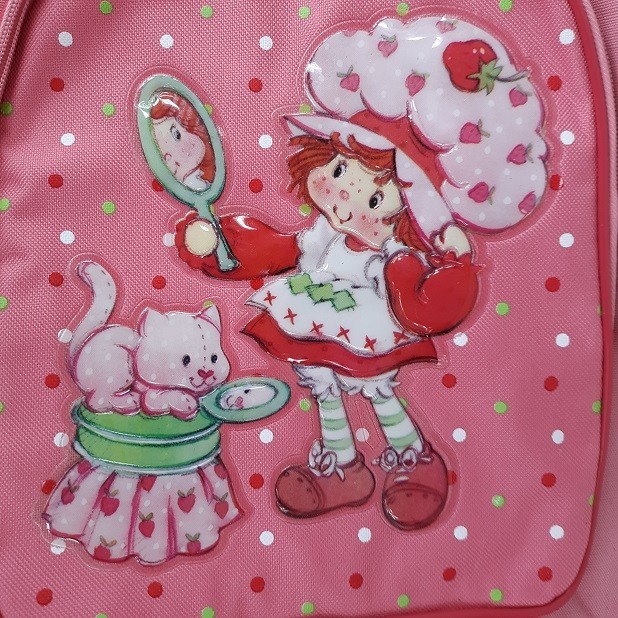This adorable Strawberry Shortcake backpack is perfect for fans of the classic character! The pink canvas is super cute, featuring her and her pet kitty. It has plenty of space with multiple zippered compartments and side pockets for extra storage. The quality is great, and it’s brand new with tags—hard to find! Lightweight yet sturdy, it’s ideal for school, travel, or just showing off your love for Strawberry Shortcake. Fast shipping and excellent seller—highly recommend!