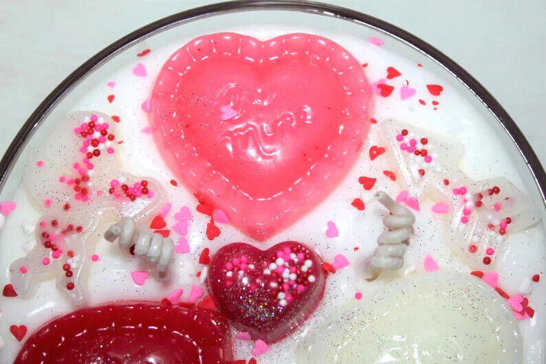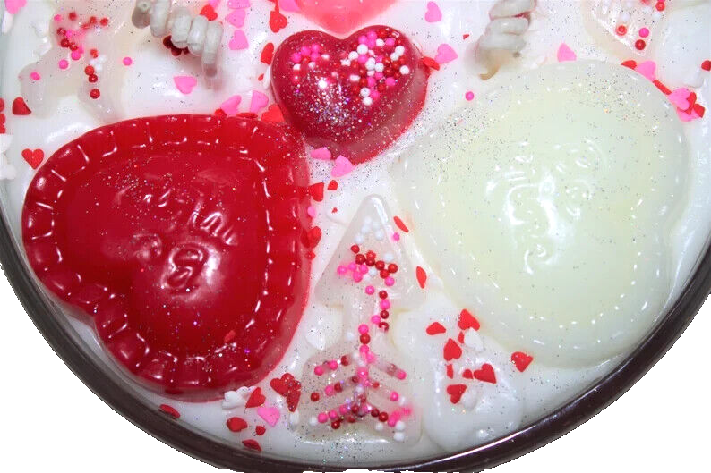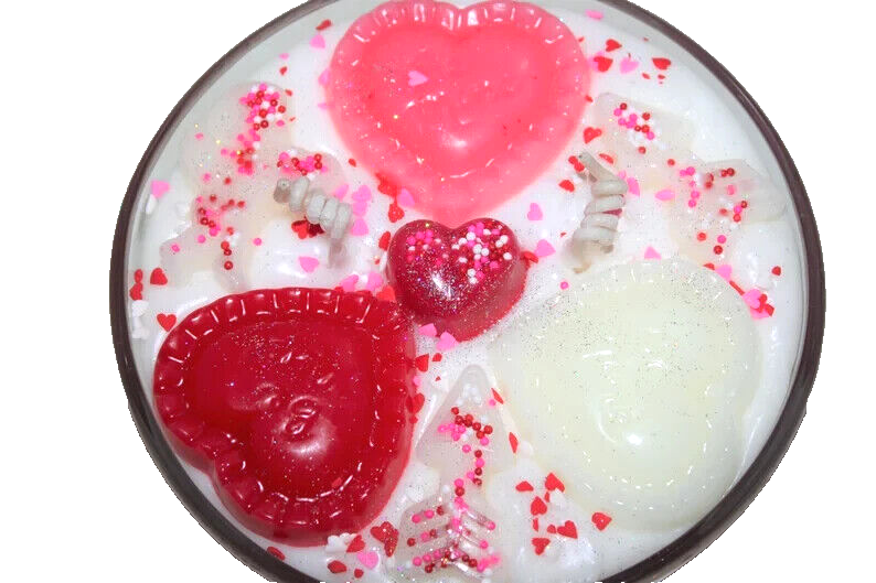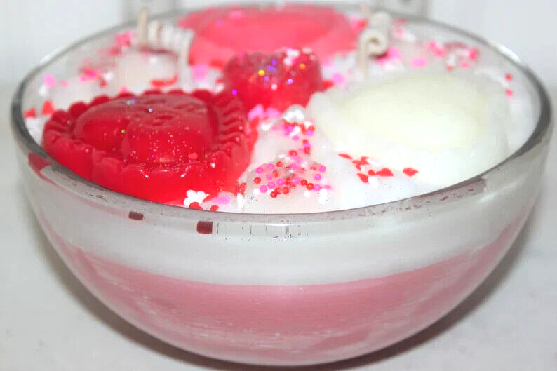**** SHIPPING IS OFTEN CALCULATED HIGH WHEN PURCHASING MORE THAN 1 ITEM SO FEEL FREE TO MESSAGE ME FOR A SHIPPING QUOTE **** When combining purchases please click on "request total from seller" at checkout and wait for me to send you a invoice with combined shipping. If you are using your phone this option may not be available and if so just message me and I can make you a listing with everything combined and the correct amount on shipping. Thank You ;) This is my handmade highly scented Valentine's bowl candle. The bowl is 6" x 3". On top of the candle I put Be Mine hearts, cupid, arrows, heart confetti sprinkles and glitter. It is highly scented in STRAWBERRY WHITE CAKE. This scent is so delicious smelling. Sweet sugary strawberries and white cake. International Buyers : Please contact me for shipping quote. Caution: Failure to follow instructions could result in fire hazard injury, or smoke damage. Keep wax free of matches, wick trimmings, or other flammable materials. Keep wick centered & trimmed to 1/4" to prevent smoking & soot build up on container or other items. Burn only on stable heat resistant surface for not more than 4 hours at a time. Keep out of drafts. Discontinue use when only 1/2" wax remains on bottom. Do not move candle while burning or if wax is hot. Keep out of reach of children & pets. Never leave a burning candle unattended. Shipping I strive to ship within 48 hours of payment received not including weekends and holidays. I ship USPS Priority or Parcel Post and for the heavier orders I can ship Fed-Ex. I do offer USPS Flat Rate shipping as well. Insurance is the buyers responsibility. I am always happy to combine auctions to save you money on shipping fees. Please email with any shipping questions or quotes if needed. Thanks for stopping by! Please do come back again soon~ *** Please note I do not accept returns for used merchandise. Must be returned in same condition as received. *** RETURNS ARE ONLY ACCEPTED IF ITEM HAS BEEN MISREPRESENTED