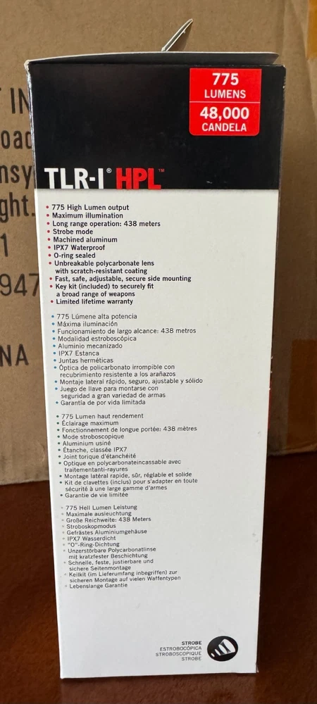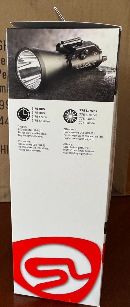 Color: Black Model: Streamlight 69215 TLR-1 HPL Brand: Streamlight Features: IPX7 waterproof, O-ring sealed, unbreakable lens, key kit... MPN: 69215 Operating Range: 438 meters Lighting Technology: LED Type: Flashlight Lumens: 775 Material: Aluminum Operating Time: 1.75 hours