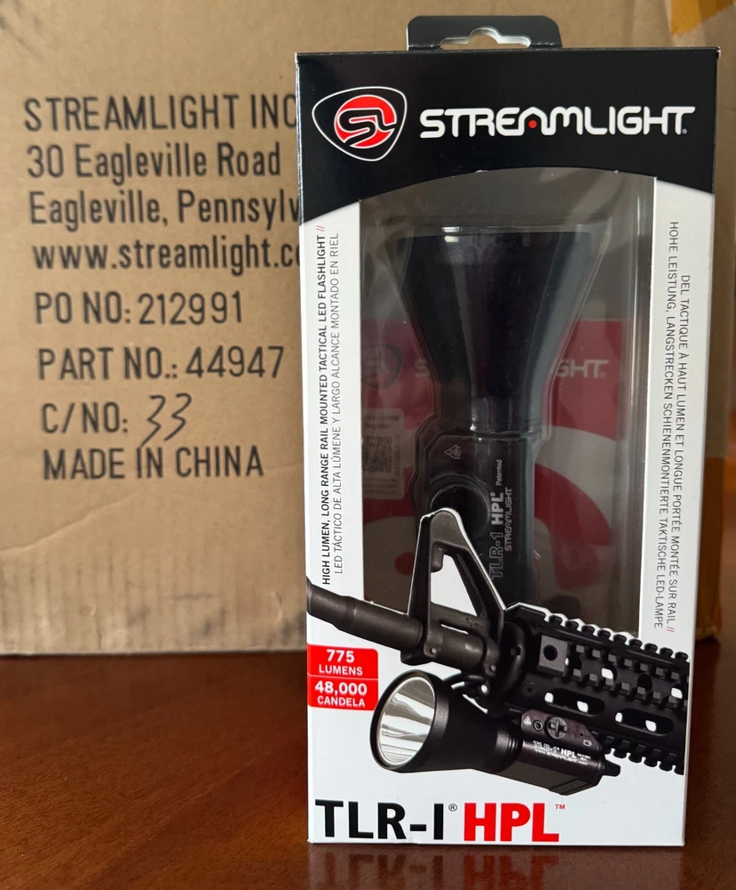Authentic Streamlight 69215 TLR-1 HPL with white LED, attaches without putting hands in front of muzzle, 775 high lumen output with maximum illumination, strobe mode, IXP7 waterproof, O-ring sealed, unbreakable polycarbonate lens with scratch-resistant coating, secure side mounting, key kit (included) to securely fit a broad range of weapons and it has a limited lifetime warranty.