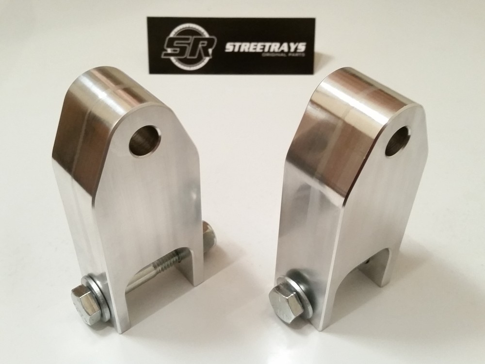 StreetRays [Originals] Chevy / GMC 1500 & 2500 Truck Front / Rear Shock Extenders 4" Bilstein Rancho CNC Machined Finished (All Around) Application: Chevy Silverado / GMC Sierra 1500 & 2500 Truck 2WD & 4WD Will work for 4" lift to 6" lift Max This kit is confirmed to work for Rear shocks but we have found that it does work with Front shocks too for most Chevy / GMC 1500 & 2500 models. Our Kit Includes: 2 x CNC Machined Rear shock bracket 2 x Highest Grade Set of Nuts & Bolts (and washers) StreetRays [Originals] parts are 100% machined right! here in Central Texas. Matched with the best hardware which is also sourced here in USA. Quality material & precision machining is the main ingredients of all our parts. StreetRays [Originals] rear shock extension brackets are CNC machined out of 6061 T6 solid billet aluminum in Central Texas. The material has been tempered, so it will handle the abuse your truck will give them. Our extenders will allow customers to keep using their stock (factory) shocks even after lifting their Chevy 1500 by about 4" to 5" without any issue. Ride quality and behavior will remain very close to stock. Why spend big dollars on a set of new shocks when your factory ones are still working fine? Just because they are too short by couple of inch? This is the answer. StreetRays rear shock extender will solve exactly that problem. They can be installed within just 45 minutes or so with basic set of tools and garage Jack + Jackstands.