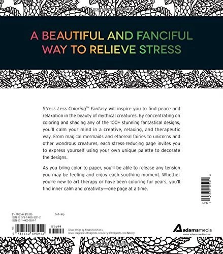 << The item is a Size >> A beautiful and fanciful way to relieve stress!Stress Less Coloring - Fantasy will inspire you to find peace and relaxation in the beauty of mythical creatures. By concentrating on coloring and shading any of the 100 stunning fantastical designs, you'll calm your mind in a creative, relaxing, and therapeutic way. From magical mermaids and ethereal fairies to unicorns and other fantastic creatures, each stress-reducing page invites you to express yourself using your own unique palette to decorate the designs. As you bring color to paper, you'll be able to release any tension you may be feeling and enjoy each soothing moment. Whether you're new to art therapy or have been coloring for years, you'll find inner calm and creativity--one page at A beautiful and fanciful way to relieve stress!Stress Less Coloring - Fantasy will inspire you to find peace and relaxation in the beauty of mythical creatures. By concentrating on coloring and shading any of the 100 stunning fantastical designs, you'll calm your mind in a creative, relaxing, and therapeutic way. From magical mermaids and ethereal fairies to unicorns and other fantastic creatures, each stress-reducing page invites you to express yourself using your own unique palette to decorate the designs. As you bring color to paper, you'll be able to release any tension you may be feeling and enjoy each soothing moment. Whether you're new to art therapy or have been coloring for years, you'll find inner calm and creativity--one page at a time. More than 100 illustrations waiting to be colored in, Fantasy images include dragons / crests / Celtic patterns / mermaids, Use colored pencils / gel pens / markers / crayon, The art of coloring has been known to relieve stress, Choose your own colors to create your unique page