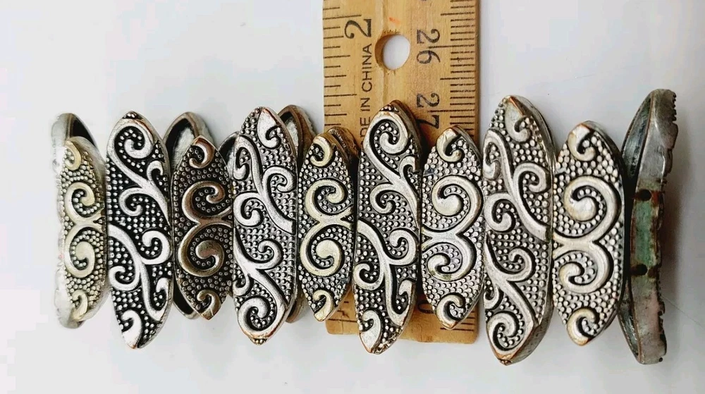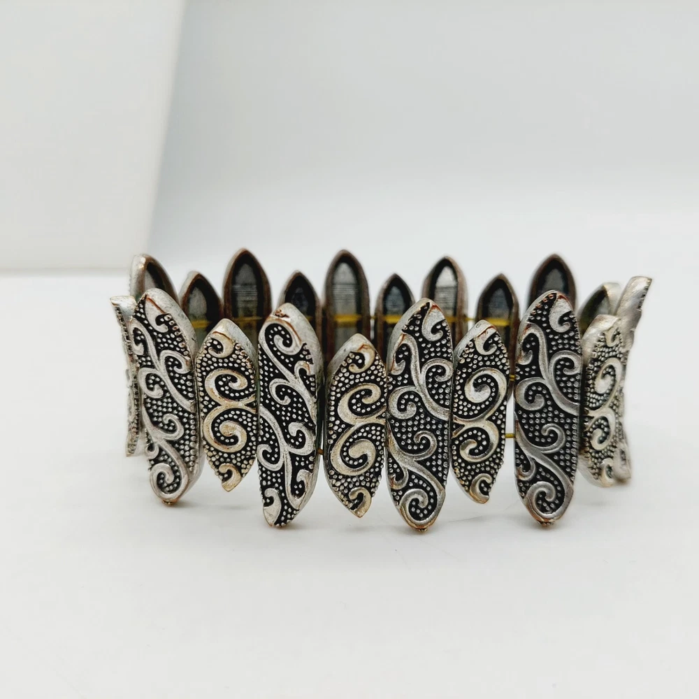 Stretch Cuff Bangle Silver Tone Fashion Bracelet Metal Bohemian Style Read