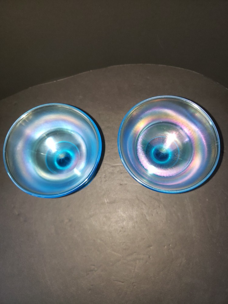 Stretch Glass Fenton Celeste Blue 2 Sherbet or Champagne Glasses 3.5" high