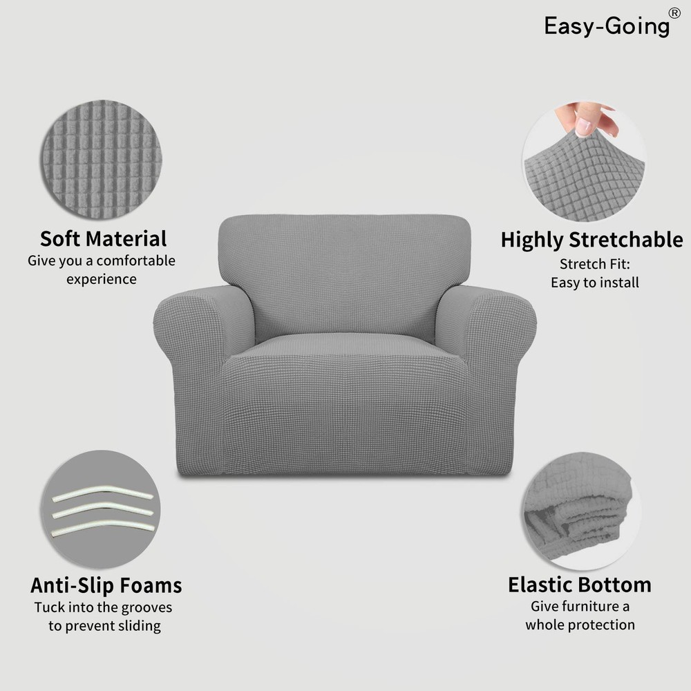 Superior Fabric: 80% Polyester+20% Spandex, high quality stretchy jacquard fabric, soft and comfortable. Dimensions:Oversized Chair Slipcover: Fit seat width is 30-50 in. More details please refer to the measurement guide in photo, please measure before purchasing. Furniture Protector: Protect your chair from daily wear and stains. Various colors are prepared, you can choose the color you like to cover Easy to Install: Check the installation guide carefully, it can be finished within 10 minutes by one person. PACKAGE: One piece slipcover with non slip foam anchors. Easy Care and : Machine washable, wash at temperature around 30 degrees Celsius, please do not bleach, do not iron. We stand behind all of our high quality products so we offer a 30 days No Question Asked on all our sofa covers. Please us (through if past the standard return window) and we will be pleased to assist you.
