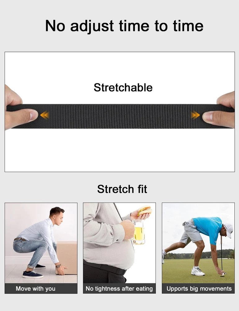 UPGRADED QUICK RELEASE BUCKLE: The specially designed zinc alloy buckle supports one handed operation without any effort. Whether in emergency situations or daily use, a simple action is enough to quickly put on and release, making your user experience more efficient and convenient. HIGH QULITY STRETCH NYLON: The strap is made by special stretch material which is more solid than regular belt. More than that, it is very sturdy as well as stretch, which make your waist be more comfortable as well as stay tight, when you take large range of activities. Anyone who do physical activities for a long period of hours will get a great use out of the tactical belt MICRO-ADJUSTMENT FOR WAIST: The length of the belt can be adjusted according to individual needs to ensure a perfect fit around the waist, providing optimal comfort. FOR SPECIAL YOU: This tactical belt is suitable for various scenarios, including outdoor adventures, tactical missions, daily work, and leisure activities. Whether you are doing high-intensity training or wearing it on a daily basis, it can provide stable support and flexibility. SHOPPING GUARANTEE: If you meet any problems after purchasing the belt, it is free to return or replace. If it past the return time, please don't hesitate to contact us by Amazon message. We promise to provide you 100% satisfying guarantee.