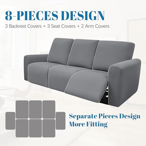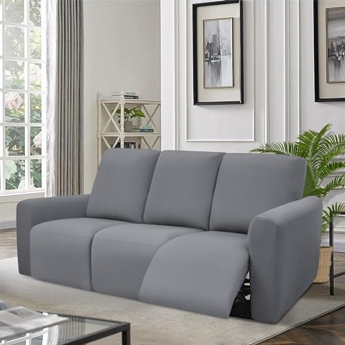 Stretchable Light Grey Reclining Sofa Cover for 3-Cushion Couches 8ft