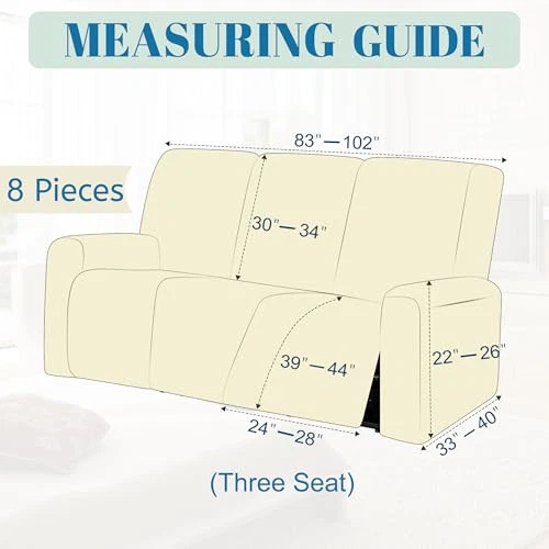 Return Policy Fast Delivery Trusted seller Cool Reclining Couch Covers for 3 Cushion Couch Stretch 8-Pieces Recliner Sofa Covers 3 Seater Non Slip Washable Recliner Slipcovers with Elastic Bottom (3 Seat, Light Grey) Product Description COOLING FABRIC: This stretch reclining couch covers is made of high-quality ice silk fabric, which feels cool to the touch and is very breathable. It is suitable for summer use, so you won't feel stuffy even in hot days. And the super soft and stretchy fabric can magically fit most recliners, ensuring a beautiful appearance. The stretchable couch covers for reclining couches come in a variety of bright colors, complementing any home decor 8-PIECES DESIGN: The recliner sofa covers 3 seater features an 8-piece design, including 3 backrest covers, 3 seat covers, and 2 armrest covers, providing excellent protection for your entire recliner couches. The fitted recliner couch covers for 3 cushion couch is suitable for recliner sofas ranging from 83 to 102 inches. Please check the measurement guide in the picture before purchg to measure your recliners PERFECT FIT: The recliner cover is specially customized for recliner set and has multiple anti slip designs to meet your usage experience. With its elastic bottom, non slip buckle, and fixed strap, the recliner slipcovers will tightly wrap around the recliner to prevent any possible sliding or displacement, ensuring that it can stay in place even on leather reclinable couches STYLISH & PRACTICAL: The slip covers for recliners with arms not only protect your furniture from stains, wear, kids, pets, cats, dogs hairs, but also adds a touch of elegance to your living space. With its sleek design and versatility, it seamlessly blends with any home decor, giving your room a fresh and inviting look. Upgrade your recliner's appearance while enjoying the practicality and durability of the funiture protector cover CARE INSTRUCTIONS: The reclining sofa slipcover can be quickly installed according to the easy-to-follow instructions in the package. Supports machine washable (please machine wash in cold water with a mild detergent and hang to dry. Do not bleach or tumble dry). The premium fabric is resistant to fading, shrinking, and pilling, ensuring that your cover maintains its vibrant color and soft texture even after multiple washes Shipping Returns Payment Shipping Shipping is FREE to all addresses other than APO/PO boxes in the lower 48 states. All our stock ships from US-based warehouses. Shipped via USPS or UPS (depending on location and package weight) Unless stated otherwise, all orders will ship within 24-72 hours of your payment being processed. Check our feedback to see the great reviews of FAST shipping we offer. Returns Seller does not accept returns Payment We currently accept payment via eBay managed payments only. Once payment is cleared, we will dispatch your shipment within 1-3 business days. Please refer to the "Shipping" tab for more information regarding shipping speed to your destination.