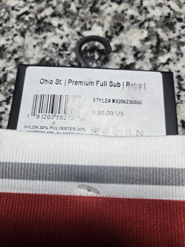 Elevate your game day attire with these Strideline Ohio State University Buckeyes Retro Tube White Socks. Decked out in the iconic Ohio State logo, these mid-calf crew socks are designed to show off your team pride. Crafted for both comfort and durability, they feature a cushioned sole and moisture-wicking technology to keep your feet dry, regardless of the weather. Ideal for any casual occasion or your next gym workout, these socks are made from a soft cotton blend and are machine washable for easy care. The white color ensures they'll pair well with any outfit, while the size L (fits shoe sizes 8-12) ensures a snug and comfortable fit for most. Whether you're a die-hard fan or just love the look and feel of these retro tube socks, they're a versatile addition to your wardrobe.