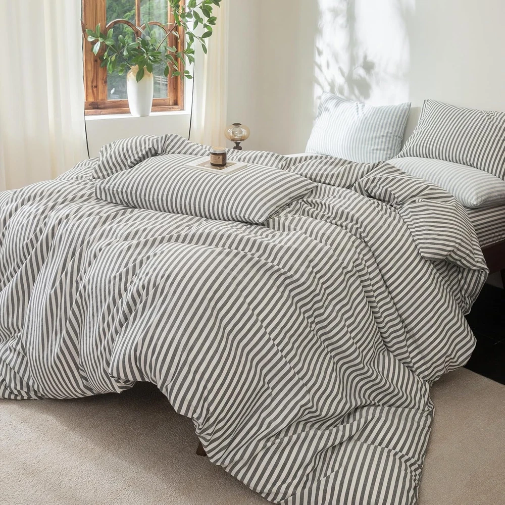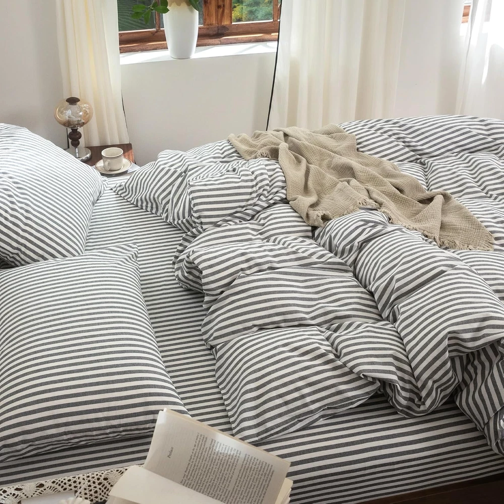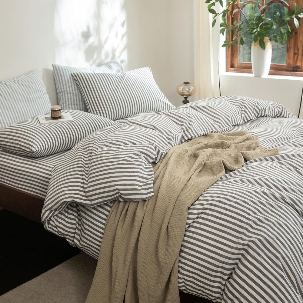 Store New Arrivals Add to Favorite View Feedback Contact Fast deliveries to the customer's home Quality customer service John Make the customers happy! Striped Duvet Cover Set 100% Washed Cotton Linen Feel Super Soft Breathable Cozy 3 Pieces Bedding Sets Dark Grey White Classic Stripes King Description Made from 100% washed cotton, the sturdy fabric can withstand normal wear and tear and is very washable, so the cotton duvet cover can retain its original appearance after washing without worrying about fading and shrinkage due to overwash Linen texture, soft and cozy (the more you wash it, the softer it gets), as comfortable and breathable as touching cotton, just like sleeping in a cloud. Slightly wrinkled appearance, easy to create a warm and classic fashion bed, can make you very comfortable at night King Size Package Includes: Duvet Cover (1 piece): 104"W x 90"L; Pillowcases (2 pieces): 20"W x 36"L; Duvet/comforter inside is not included The duvet cover queen size cotton has a hidden zipper for easy insertion and removal of the down. 8 corner ties: fastened to the duvet (sold separately) for a secure fit, preventing the duvet from sliding around during sleep and affecting your sleep Care instructions: Machine wash cool; tumble dry gently; iron if required. They wash well and get softer each time, and the hair on cats and dogs can easily fall off, allowing you to spend precious time with your family and pet FOSSA linen duvet cover 3-piece set is also a perfect accompany for your family and friends, I believe they will feel very happy and grateful when they receive this comforter cover. (For all seasons) Product description Fossa—where comfort meets style Soft, breathable, cooling and lightweight—just like a dream. Breathable duvet cover to create your own private space If you want a linen style bedding, this duvet cover set is beautiful and perfect Pillowcase ends with envelop closure, simple and clean, easy to remove and wash With a hidden zipper closure, easy to get the duvet insert in/out If you want a linen style blanket , is beautiful and perfect 1 Sense of Atmosphere 2 100% Cotton Fabric 3 Envelop Pillowcase 4 Hidden Zipper Closure 5 Linen Texture Designed for restful nights and refreshing mornings Different monitors will have a slight color difference Easy to maintain and durable, becoming softer with each wash. 4-Layer 100% Cotton Gauze Super Soft & Breathable Throw FOSSA will always be with you Olive Green Muslin Blanket FOSSA will always be with youMuslin Blanket Beige Muslin Blanket FOSSA will always be with you Dark Orange Muslin Blanket FOSSA will always be with you Dark Gray Muslin Blanket FOSSA will always be with you Bright White Muslin Blanket FOSSA will always be with you Beige Gray Muslin Blanket Different Colors Create Different Styles Color Stripes - Dark Grey (No Comforter) Pattern Striped Material Cotton Size King (104" × 90") ABOUT US We offer the best prices around on high quality products. Our E-store includes media such as books, movies, music and games while offering electronics, toys, sporting apparel, clothing, tools, general home, garden items and more. SHIPPING We are always working hard to ensure your package arrives as soon as possible. Please understand that some factors like weather, high postal traffic, and the performance of shipping companies are outside of our control. We offer free shipping to the lower 48 states and ship within 2 business days of payment, usually sooner. We do not accept P.O. Boxes. Please provide a physical address. For shipping outside of the continental USA, we only use eBay's Global Shipping Program. The item is shipped to KY and then sent to the rest of the world. International customers are responsible for all duties and taxes. Continue to 'check out' to calculate costs for shipping the item to your country. Messages regarding eBay's Global Shipping Program MUST be directed at eBay EXCLUSIVELY. RETURNS We offer a 30-Day Return Policy on items in which you are not completely satisfied with. You have the option of a full-refund or an exchange of the item. No returns are available on items shipped outside of the USA PAYMENT We accept PayPal. CONTACT US This page content is yet to come Please ad us to your favorite seller and visit again later Thank You CUSTOMER SATISFACTION We try our very best to make sure every customer is completely satisfied. If there's a problem, message us! We're happy to help. WE ACCEPT