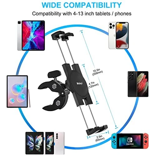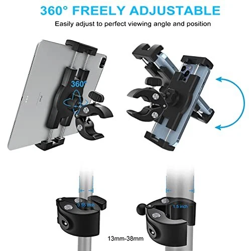 Return Policy Fast Delivery Trusted seller Stroller Tablet Holder for Baby, Phone iPad Holder Mount Handlebar Clamp for Golf Cart, Wheelchair, Scooter, Gym Bicycle, Workout Equipment, Tripod for iPad Pro 12.9, Air, Mini, Tabs, iPhone (4.7-13") Product Description 【Safe and Stable】The clamp tablet stand is made of PC with high material and performance, which has good stability, no deformation, no cracking. The surface w the bracket contacts the tablet is designed with non-slip soft rubber, that can protect your tablet from falling,also effectively prevent its' scratches. In addition, the widened and non-slip clamp base allows it to have a larger contact area to be fixed on the handlebar, providing you a smooth use experience. 【Tablet Holder For Stroller】Tablet Holder For Stroller This clip-on stand is specially designed for stroller handlebars. The diameter of the clip is adjustable: 0.65-1.95 inches, almost all strollers on the market can be used. The place w the clip contacts the handlebar has a non-slip rubber protection, which not only acts as a non-slip, but also protects the handlebar from scratches. 【360 Degree Rotation】Ball joint design, you can freely adjust the iPad stand according to your needs to get the best viewing angle (horizontal, vertical or inclined), the clamp part adopts anti-shake non-slip rubber to ensure your smooth viewing. 【Easy To Travel With Your Baby】This flexible tablet stand is a must-have for every mother, allowing you to do things you like while taking your baby, such as editing text messages, watching movies, listening to music, taking photos, and shooting videos and many more. Completely liberate your hands, without the need to hold the baby in one hand and reply to the message, so that you can travel without worry. 【Universal Compatibility】: This tablet mount works with all 4.7-12.9 inch devices, such as new iPad Mini 6, iPad Air 4, 2020 iPad Pro 12.9, iPad Pro 10.5, iPad Pro 9.7, iPad Pro 11, iPad 10.2, iPad Air, iPad Air 2, iPad mini 2 3 4, Accessories, Galaxy Tab, iPhone 14 Pro Max, iPhone 13 Pro Max, 12 11 Pro Max, Xs, X, smart phones and other tablets. ❗ Suit for 4.7 - 12.9 inches devices is refers to the length of the device diagonal, not the device's width. Shipping Returns Payment Shipping Shipping is FREE to all addresses other than APO/PO boxes in the lower 48 states. All our stock ships from US-based warehouses. Shipped via USPS or UPS (depending on location and package weight) Unless stated otherwise, all orders will ship within 24-72 hours of your payment being processed. Check our feedback to see the great reviews of FAST shipping we offer. Returns Seller does not accept returns Payment We currently accept payment via eBay managed payments only. Once payment is cleared, we will dispatch your shipment within 1-3 business days. Please refer to the "Shipping" tab for more information regarding shipping speed to your destination.