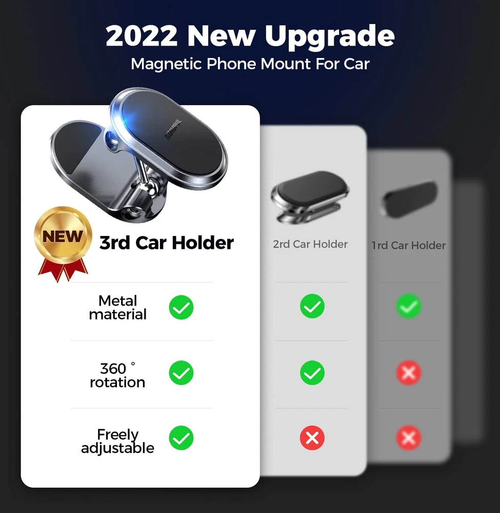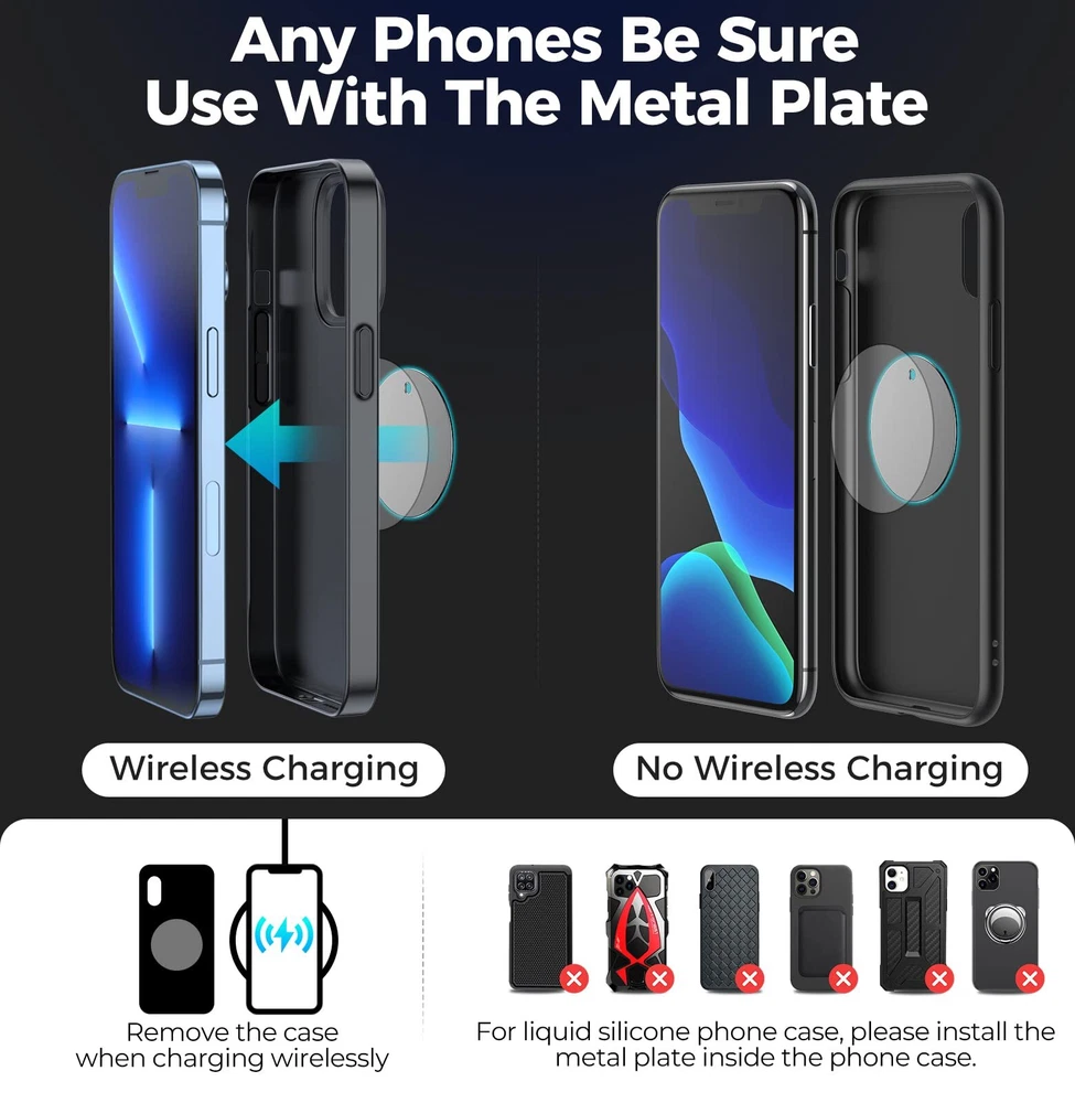 Multi-functional Magnetic Phone Mount: All phones even with Mag-safe must be used together with the included metal plate!!!!!!Please check the product page details for installation instructions.This magnetic phone holder for car is used for the dashboard, instrument panel, back of the screen, desktop and other applicable areas.There are heat resistant metal mount for your car, so don't miss it! magnetic phone car mount quality material: You must be in great need of a hard-wearing metal mount! Our car phone holder is made of very strong titanium metal and silicone, which is durable and protects your phone. Magnetic suction and 3M fixing adhesive: Cell phone holder built-in 6 N52 highest magnetic suction magnet, hold your phone firmly, never fall. 3M adhesive using the most advanced technology in 2025, solve the trouble can not stick, firmly fixed bracket, please note: please find the most suitable place to install the bracket before use, the location size is 40mm * 60mm.Please check the installation steps in the manual or product page in detail and follow the instructions strictly!! Universal Compatible Magnetic Car Holder: There is no limit to the size of the mobile phone. This magnetic car holder is compatible with all smartphones, iPhone 16/16 Pro/16 Mini/16 Pro Max/15/15 Pro/15 Mini/15 Pro Max/14/14 Pro/14 Mini/14 Pro Max/13/13 Pro/13 Mini/13 Pro Max/12/12 Pro/12/12 Mini/ SE / 11/11 Pro / 11 Pro Max / XS MAX / XS / XR / X / 8 / 8Plus / 7 / 7Plus / 6 6s Plus and Samsung Galaxy Note20/ S20 / S20+ / S20 Ultra 5G / Note10 / Note9 / Note 8 / S10. (Note: The metal plate needs to be attached to the back of the phone or phone case) What You Will Get:1*Metal dashboard phone mount, 2* metal plate,1*extra 3M adhesive,One-year warranty and lifetime after-sales service. Following conditions so that you get a car mount that is well fixed to the dashboard.1.The surface to which the mount is affixed is at least 40*60mm and is NOT Leather, Oiled, Uneven surface.3.The mounting surface will be wiped with alcohol cloth and wait for it to dry.4.Install it in the area position and press it for 3-5 seconds.5.Wait more than 12 hours to use, it needs time to fit the position.6.Sticker can only be used once and cannot be shifted to a different location after installation.