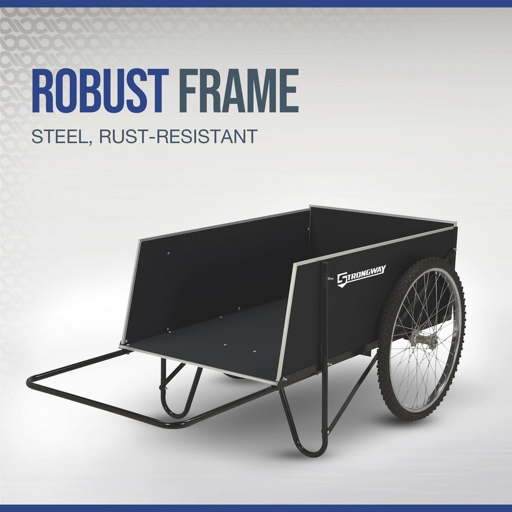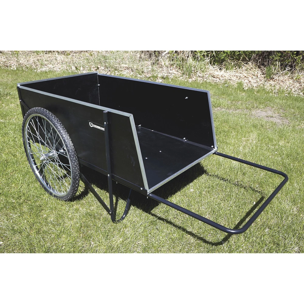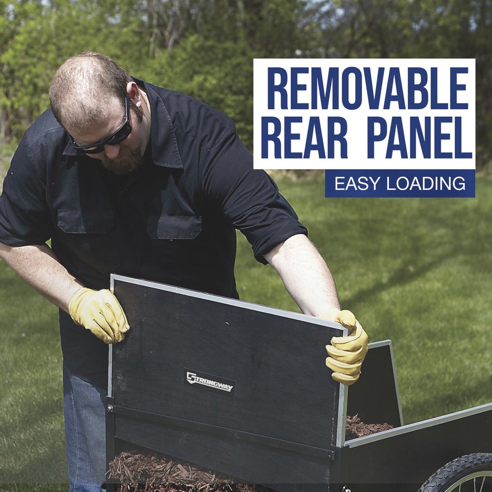 This Strongway Garden Cart has a 400-lb. working load capacity, (2) 26in. spoked pneumatic wheels with ball bearing hubs for smooth movement, a rigid steel frame with rust-resistant powder-coat finish and sturdy plywood panels with attractive aluminum edging. The removable rear panel makes for easy loading and unloading. Use this cart for hauling pots, tools, plants, clippings, seed and more. Bed size is 48in.L x 29in.W with 15-1/2in.H. Oversize shipping charge applies. Strongway Garden Cart, 14 Cu. Ft., 400-Lb. Capacity, 26in. Pneumatic Wheels, Steel Frame Northern Tool Item# 46441 Item Weight: 72.2000 lb(s) Manufacturer: Strongway MPN: Warranty: 1 year Limited Warranty. Product Summary: This Strongway Garden Cart has a 400-lb. working load capacity, (2) 26in. spoked pneumatic wheels with ball bearing hubs for smooth movement, a rigid steel frame with rust-resistant powder-coat finish and sturdy plywood panels with attractive aluminum edging. The removable rear panel makes for easy loading and unloading. Use this cart for hauling pots, tools, plants, clippings, seed and more. Bed size is 48in.L x 29in.W with 15-1/2in.H. Oversize shipping charge applies. Features + Benefits Payment Instructions You can pay us securely through eBay. All orders will contain an invoice/receipt. IMPORTANT: We will not honor requests to remove invoices or receipts from packages. No exceptions ON U.S. PURCHASES, Northern currently collects sales tax on purchases shipped to all states except: Alaska, Delaware, Montana, New Hampshire, Oregon Shipping Information This product will be shipped by Parcel. Parcel Shipping: Ground Shipped items must be sent to a physical address and cannot be sent to PO boxes. If a PO box address is submitted without a physical address it may delay your order. We cannot ship to APO/FPO boxes. Please note that we do not ship items on weekends or holidays. More information on shipping and handling times can be found on our Store Policies Page . Customer Care We want you to be satisfied with your purchase; please notify us by email if you have any concerns. Before you send an email message, please check our Help Section . We may already have an answer to your question! We are available to answer your email questions Monday through Friday from 8am - 3pm CST, excluding holidays. If your email is sent on a weekend, holiday or after business hours, we will respond to you on the following business day. Returns may be accepted on most items within 30 days of receipt of the item. All returns require authorization from us. Some returns are charged a 15% restocking fee. Please click the Shipping and Payments tab on this item for specific return information and full details. About Our Products Product Warranty: 1 year Limited Warranty Warranty information and contact details can be found on our Store Policies Page. We are working hard to ensure that the information provided on the eBay product advertisements is accurate and up-to-date. We reserve the right to correct ad errors and/or omissions. Pricing and availability is subject to change without notice. Yes