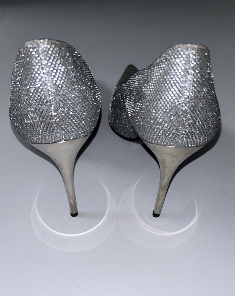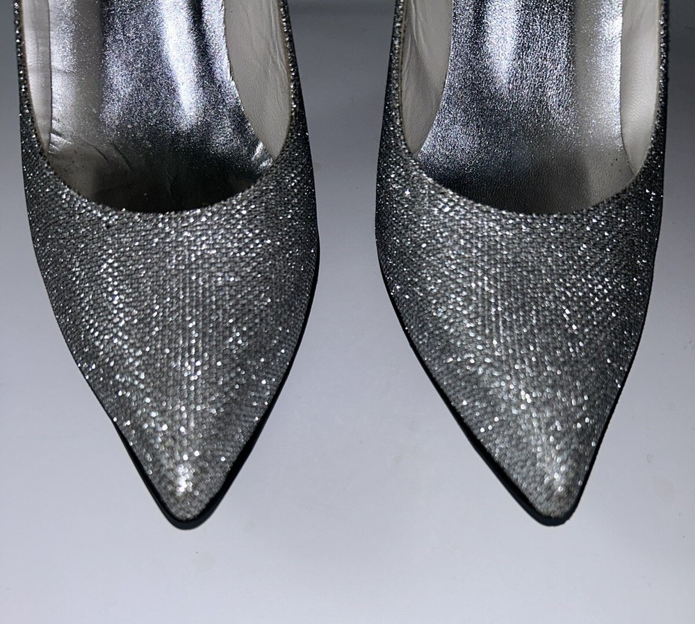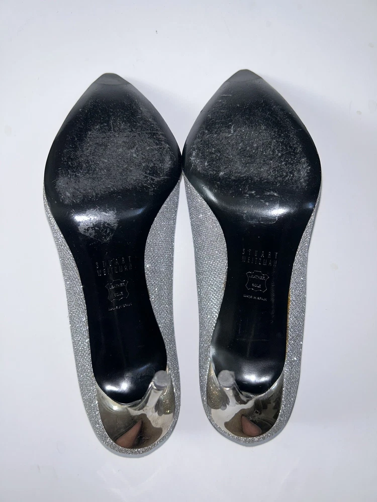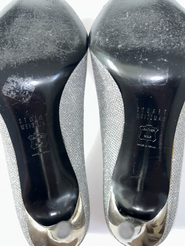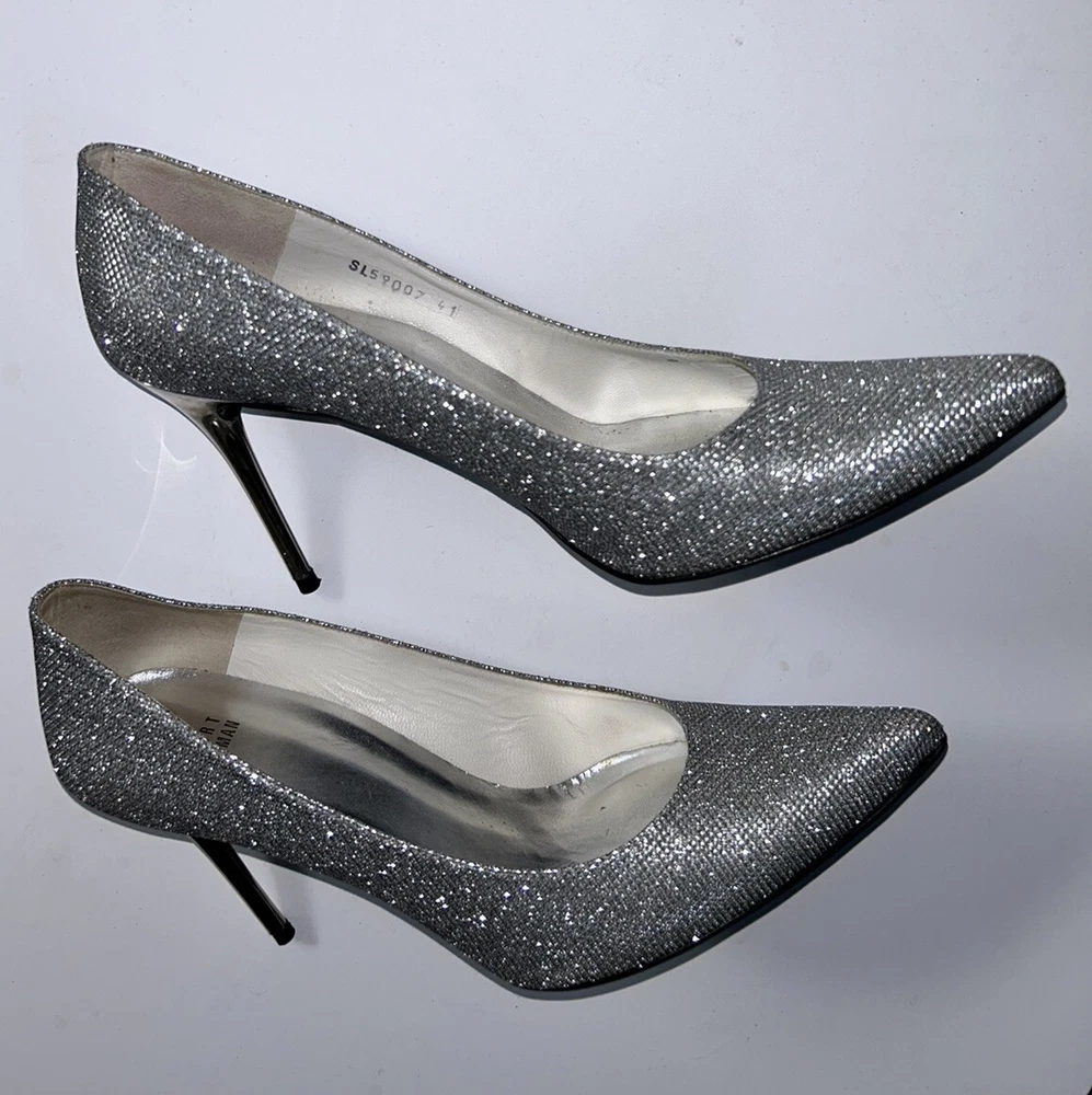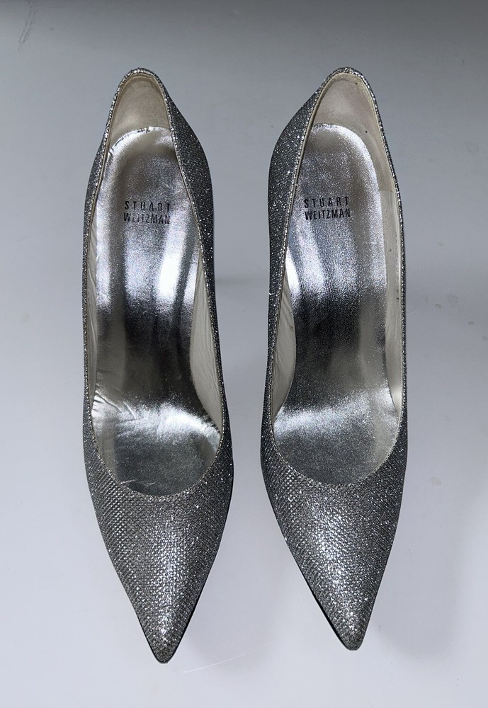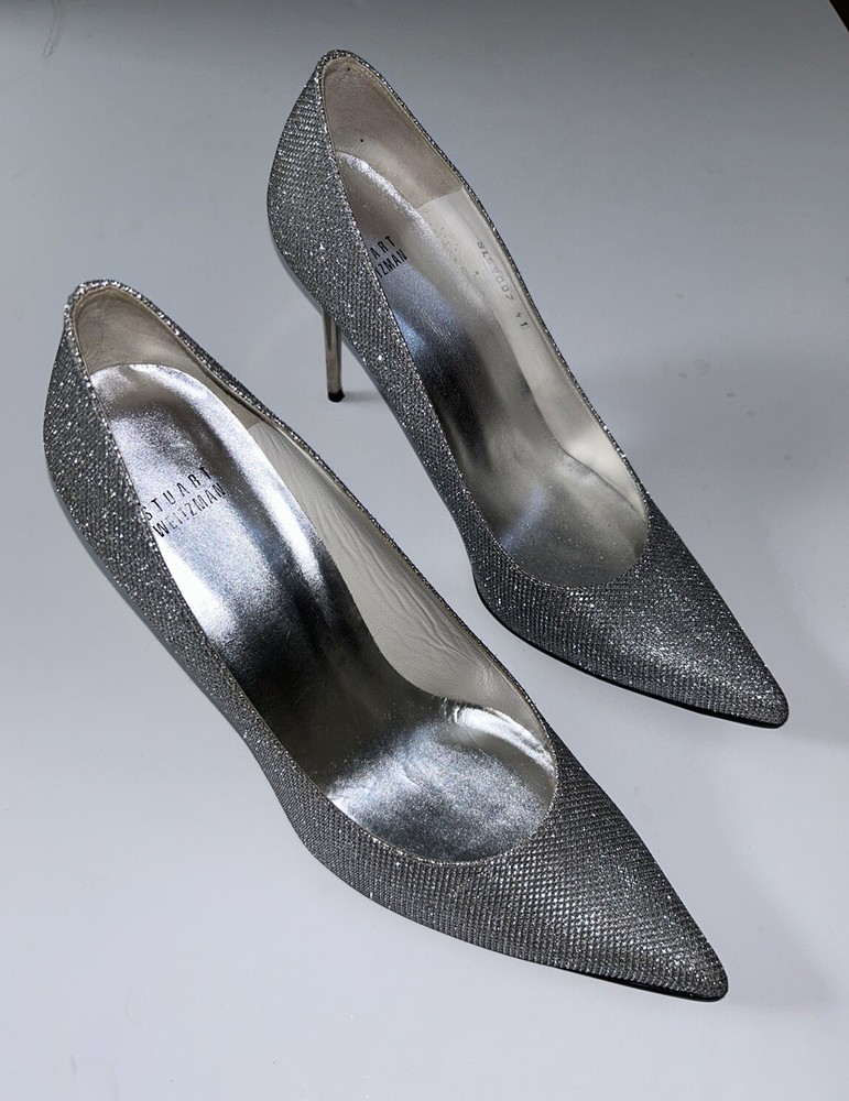 Colour: Silver Type: Heel AU Shoe Size: 10 Upper Material: Metallised Fibres Brand: Stuart Weitzman Department: Women Style: Pump