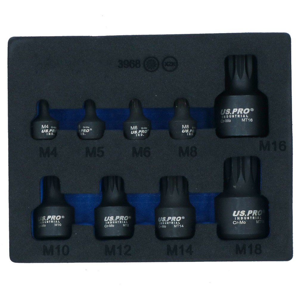 Stubby Impact XZN Spline Triple Square Male Sockets M4 – M18 Mixed Drive 9pc Description Professional triple square / spline sockets for commercial or occasional home use Stubby impact spline triple square bit sockets Spline / Triple square male sockets Spline sockets are also referred to as triple square sockets Triple square / 12 sided sockets this limits the amount of wear on the corners of the fasteners and the socket as you have more sides / teeth on the socket biting onto the item Stubby sockets so ideal for access into restricted awkward areas Mixed drive spline sockets Mixed drive including 1/4in, 3/8in and 1/2in drive Manufactured from CR-mo steel for maximum strength and durability Impacted sockets so suitable for use with high torque tool such as impact guns SET INCLUDES THE FOLLOWING • 1/4in Drive (total length 19mm) – M4, M5, M6 and M8 • 3/8in Drive (total length 30mm) – M10, M12 and M14 • 1/2in Drive (total length 38mm) – M16 and M18 Comes in an EVA foam tray for easy storage and transportation