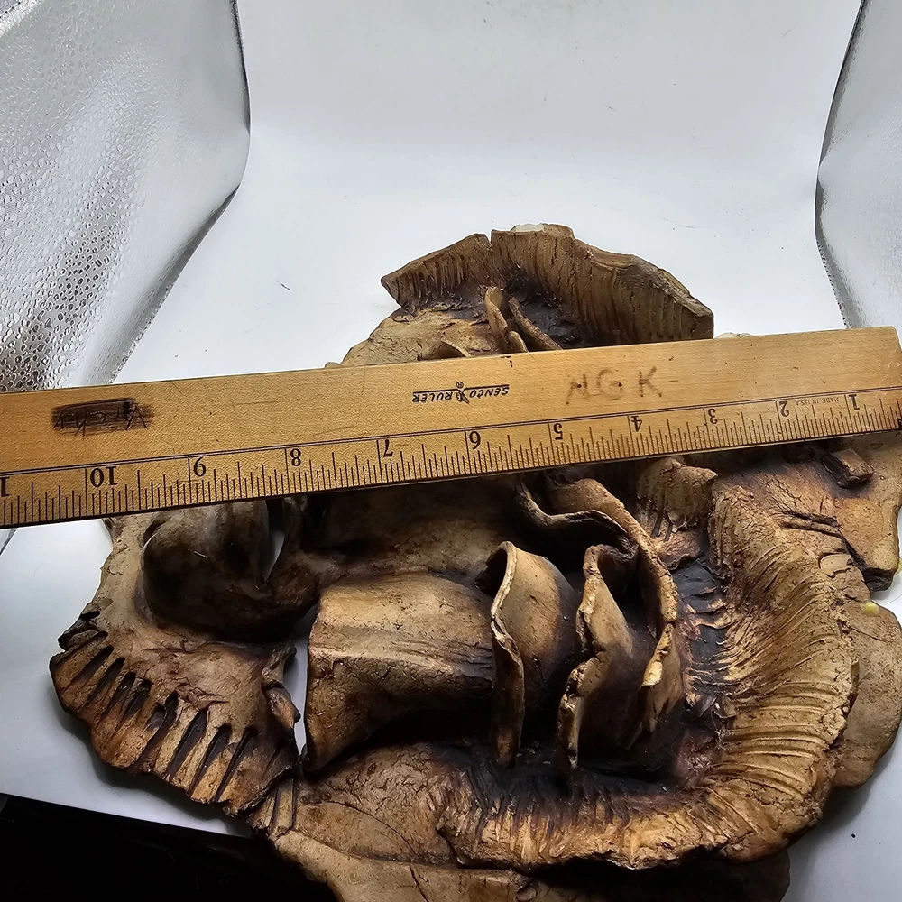 This is a unique and one-of-a-kind Studio Art Pottery Face Mask Art signed by Farrell. It is a weirdo estate find that features a 3D sculpture in the form of a face mask. The mask is made of clay and is an example of pottery production technique. It is a perfect addition to any art collection and a great conversation starter. There are chips. May be a larger one on top... not sure if that was on purpose. See photos for imperfections sold as is