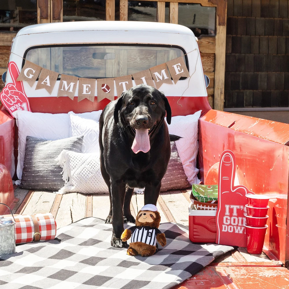 Game day is the best day! Petshop by Studio “Rufferee” is perfect for playtime, anytime. Made with a super loud squeaker, fluffy faux fur and stuffed with fluff, they’ll be no false starts when playing with this toy. Great for all sized dogs and not intended for aggressive chewers. Super loud Squeaker Stuffed with fluff Great for fetch and play Perfect for all sized dogs Toy is approximately 10” h x 6” w x 4.5” d