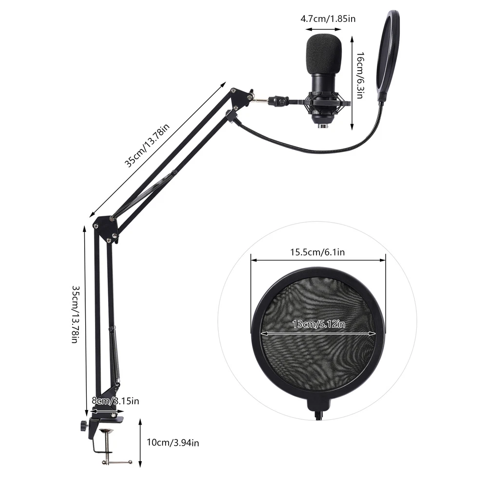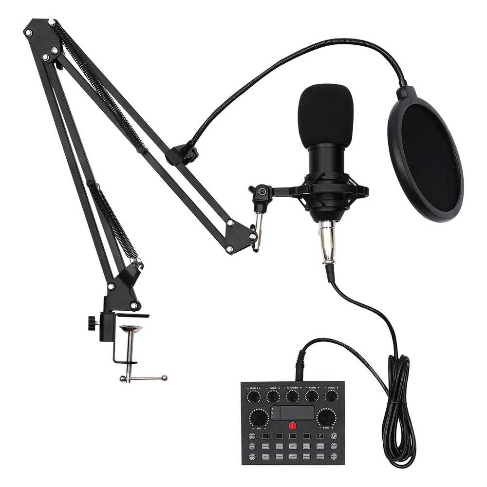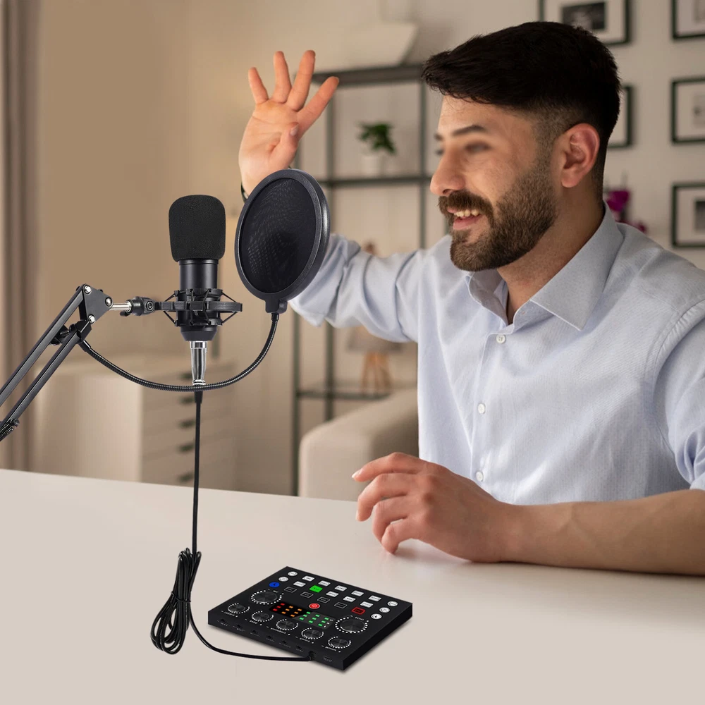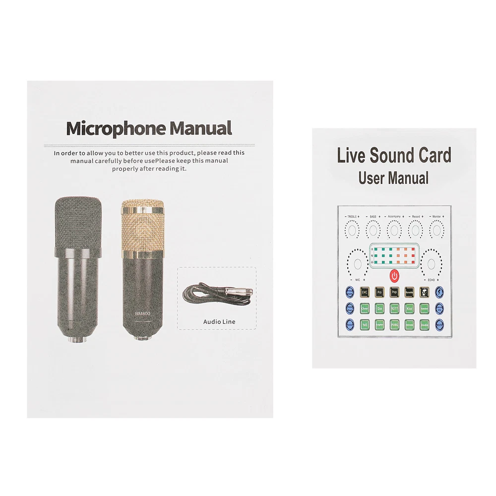 Podcast Equipment Bundle Home Studio Recording Kit Music Mixer Headphones NEW Studio Recording Kit Microphone Set Music Podcast Equipment Mixer Condenser Home welcome~ Home Studio Recording Kit Microphone Set Music Podcast Equipment Mixer Condenser Description The live-streaming industry has become increasingly popular in recent years. More and more people are using live streaming platforms to teach, sell, etc., bringing more fun into people's lives. If you want to be like them, then our high-quality, powerfully functional, multi-sound mode podcast equipment bundle is a great helper for your broadcasting work and can bring a clearer experience to your audience. Key Features Build to Last: This podcast equipment bundle is made of high-quality plastic and metal and adopts a baking paint treatment, making it durable, so you can use it without frequent replacement, which can save your use cost. Multiple Sound Modes: It includes 7 sound modes, 10 sound effects, and 4 sound changing effects (female, male, baby, and monster), which can effectively solve embarrassing problems when you can't be responded in the live broadcast room, making your live broadcast more interesting and vivid. Clear Vocals: It offers a sampling rate of up to 24 bits/192 kHz for unparalleled clarity in your recordings. The three-layer protection system prevents noise and the microphone allows direct limiting of the sound card. High Compatibility: It can be used on any mobile phone (even two phones at the same time), Bluetooth, PC, tablet, iPad, PS4, Switch, Apple iOS, Android, and most gaming platforms to meet your needs in different scenarios. Fully Featured: This podcast equipment bundle contains almost all the common functions of broadcasting, such as treble, bass, record, monitor, echo/MIC adjustment, accompaniment, voice change, and elimination of the original sound in the song, bringing more possibilities to your live broadcast. Easy to Use: After assembly, you just plug this recording microphone into the mixer socket and use the device without the need for additional driver software. The user-friendly operation panel and two English manuals also help you a lot. Ideal Gift: With its powerful functions, it is a great gift for friends and family who love or are engaged in the live broadcast industry so that they can enjoy a more convenient live broadcast environment. Modern Appearance: The smooth lines and timeless black give this product a sense of modernity and fashion, bringing a cool element to your live broadcast. Highly Portable: Thanks to the detachable design and lightweight (2.43 lbs), you can easily carry this podcast equipment bundle in your bag for outdoor broadcasts or performances. Details Mount Bracket: It can stably hold the microphone without easy shaking. It's also adjustable to provide you with a more comfortable position. Blowout Preventer: It effectively filters out external noise to give you a clearer and more audible sound. Earphones: The earphones with long lines eliminate the need to purchase additional headphones and allow you to hear yourself live. Microphone Cover: It can protect your microphone and prevent sundries from entering. Application It is suitable for live streaming, broadcasting, podcasting, singing, music recording, and gaming at home, office, school, etc. It is ideal for live broadcast enthusiasts, beginners, DJs, etc. Specification Color: Black Material: Plastic, Metal Process: Baking Paint Model of Condenser Microphone: BM800 Assembly Required: Yes Mounting Type: Clamp Hanging Compatible Devices: Laptop, PC, Tablet, Smartphone Number of Pieces: 1 Sound Modes: 7 Sound Effects: 10 Sound Changing Effects: 4 Power Source: Battery Powered Battery Type: 1 * 18650 Lithium Batteries (Included) Battery Capacity: 500mAh Standby Time: About 2 Hours Diameter of Jack Port: 3.5mm/0.14inch Sensitivity: -34 dB ± 2 dB (0 dB = 1 V/Pa at 1 kHz) Frequency Range: 20H - 20kHz Equivalent Noise Level: 16 dB-A Impedance: <= 200 ohms Recommended Load Impedance: >= 1000 ohms Connector: 3-pin XLR to IEC Max. Sound Pressure Level: 132 dB (1kHz ≤ 1% THD) Bow Clamp Distance: ≤4.5cm/1.77inch Live Sound Card Size: 12.5*10.6*2.7cm/4.92*4.17*1.06inch Microphone Size(D*H): 16*47cm/6.3*18.5inch Package Size: 42*20.5*6.8cm/16.54*8.07*2.68inch Net Weight: 1.1kg/2.43lbs Gross Weight: 1.4kg/3.09lbs Package Included 1* Live Sound Card 1* Microphone 1* Mic Tripod Set 1* Microphone Cover 1* USB Cable 2* 3.5mm TRRS Audio Cables 1* XLR Cable 1* Earphones 1* Blowout Preventer 2* English Manuals All Accessories for Installation Notes 1. Please charge the battery after receiving the product and press and hold for 5 seconds when switching on the product. Please do not put the microphone too close to the sound card when switching it on, otherwise, there will be noise. 2. For a better user experience, please read the user manual before setting up. 3. Please note that if your phone does not have a 3.5mm jack, you need an adapter(not included) (TYPE-C, Apple, mini USB, etc to 3.5mm). 4. Please allow the slight color difference caused by the shooting light and 1-3 cm error due to manual measurement, and make sure you do not mind before ordering. Payment Delivery details Terms of sales About us Contact us Payment We accept ebay payment 。 Fees such as import duties, taxes are not included in the item price or shipping costs. These charges are the buyer's responsibility. Delivery details Shipping: 2-9 working days to: USA Terms of sales We maintain high standards of excellence and strive for hundred percent customer satisfaction. Feedback is very important to us. We hope that you contact us immediately before you give neutral or negative feedback, so that we can address your concerns. It is impossible to address issues if we do not know about them! About us Your satis faction is our ultimate goal. We work hard to earn your trust and future business. Our certified technicians have tested each item before shipping. The unit com