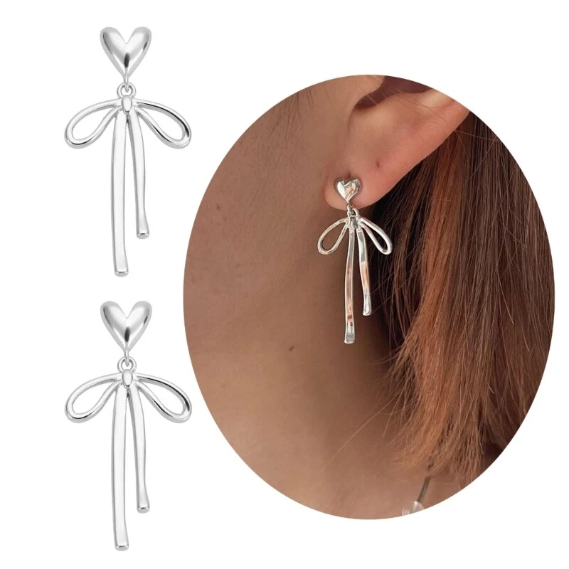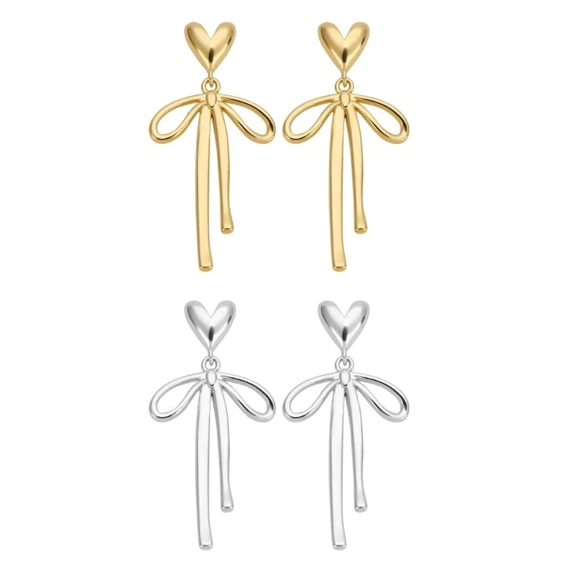 Features: Embracing the essences of love and with these heart bowknot studs earrings, blend of elegances and trendsetting appeal. Crafted from quality these studs boast durability and a lustrous that captures attention without fading over time. Fashion women, youthful ladies who like personalized accessories, will find these earrings to be addition to their jewelry collection. Perfect for various occasions, these studs are enough for daily wear, casual outings, and special event like dates, parties, and weddings, enhancing feminine graces and confidence. With their shape, these earrings offer comfort for all day wear while adding a sophisticated touch to any outfit, making important accessory fashion jewelry list. Specifications: Texture: Color: Golden/Silver Length: Approx. 1.377inch(3.5cm) Package Includes: Pair Earrings note: Please allow 1-2cm errors due to manual measurement. Due to the differences between different monitors, the picture may not reflect the actual color from the item.