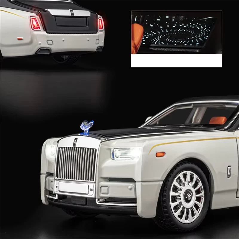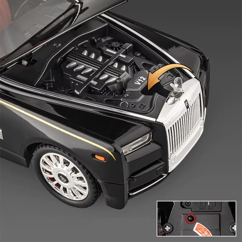 Exquisite Design and Detail This meticulously crafted 1/18 scale model of the Rolls-Royce Phantom alloy diecast captures the grandeur and elegance of this luxury vehicle. Every curve, detail, and finish is recreated with precision, showcasing the craftsmanship that Rolls-Royce is renowned for. The attention to detail in the design ensures that this model stands out as a stunning display piece for collectors and enthusiasts alike. Realistic Features for Enhanced Experience Equipped with sound and light functionalities, this diecast model offers an interactive experience that distinguishes it from conventional toy vehicles. The simulation of engine sounds and the illumination of headlights provide a captivating sensorial experience, making it perfect for imaginative play or as a showpiece in a collection. The model's features make it not only a display item but also a fun toy for children and adults who appreciate fine craftsmanship. High-Quality Materials Constructed from durable alloy, this model offers a sturdy build that is designed to stand the test of time. The quality materials used ensure that the model maintains its aesthetic appeal and structural integrity, making it a worthwhile addition to any collection. The attention to manufacturer's standards guarantees a product that can be cherished for years to come. Ideal Gift for Car Lovers This 1/18 Rolls-Royce Phantom model is an excellent gift for car enthusiasts, collectors, or anyone who appreciates luxury automobiles. Whether it's for a birthday, holiday, or special occasion, this diecast vehicle makes for a memorable present that can be treasured. Its blend of elegance, realism, and functionality ensures that it will leave a lasting impression on its recipient. Perfect for Display and Entertainment Not only does this diecast model serve as an artistic representation of a luxury vehicle, but it also functions well in various environments. Whether you choose to display it on a shelf, in an office, or in a kid's playroom, its striking aesthetics and engaging features will enhance any space. This model is a fantastic conversation starter and a testament to the delight of automotive artistry. --- Dimensions Conversion: For reference, the dimensions of the model in inches are approximately 9.45 x 4.53 x 4.72 inches, converting from the original measurement of 24 x 11.5 x 12 cm.