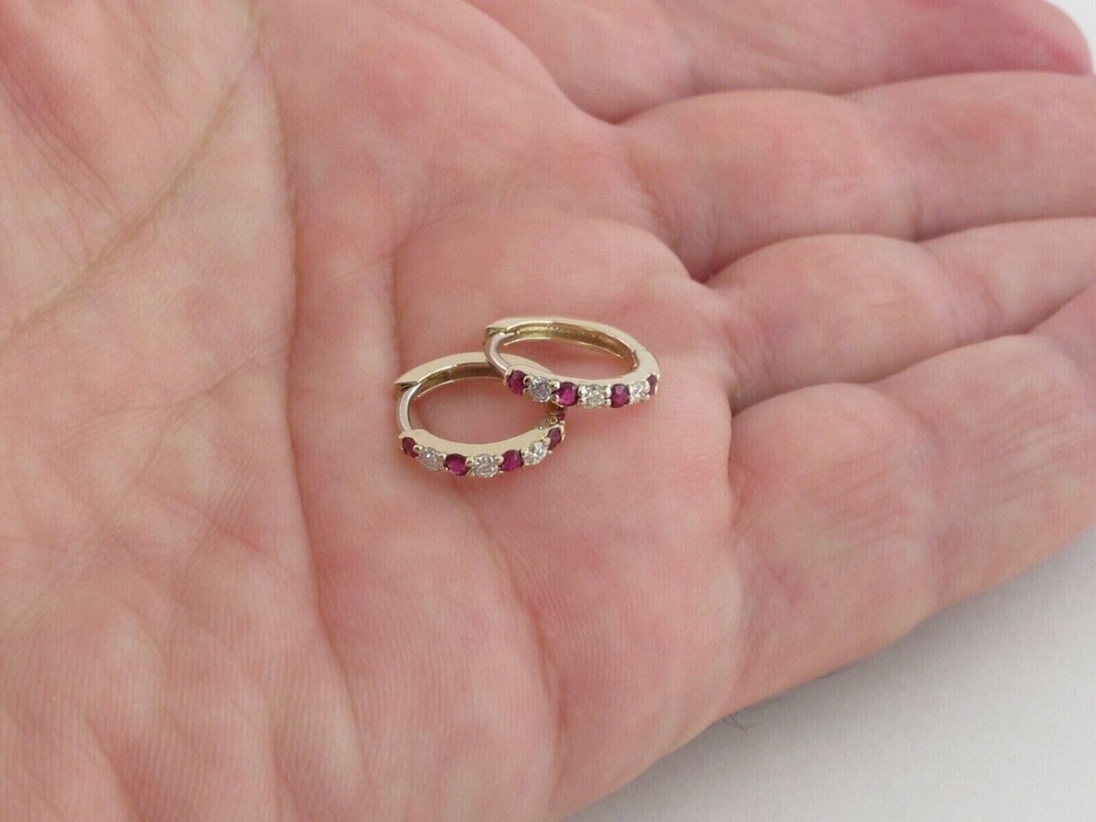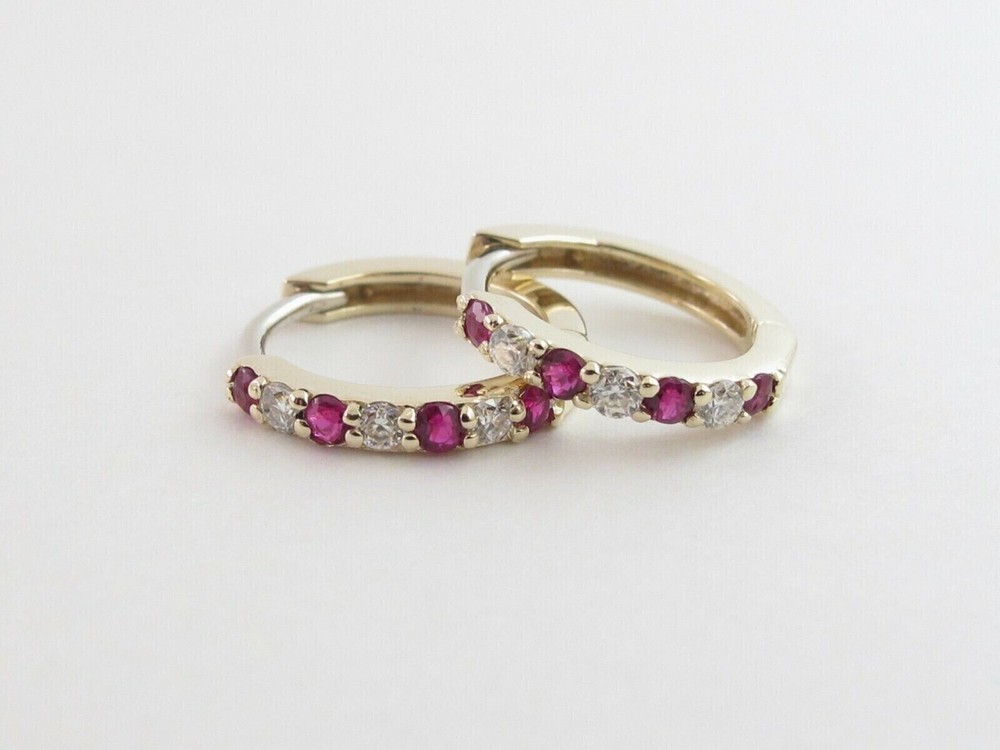Stunning 14k Gold Plated Pink Simulated Ruby Huggie Hoop Earrings