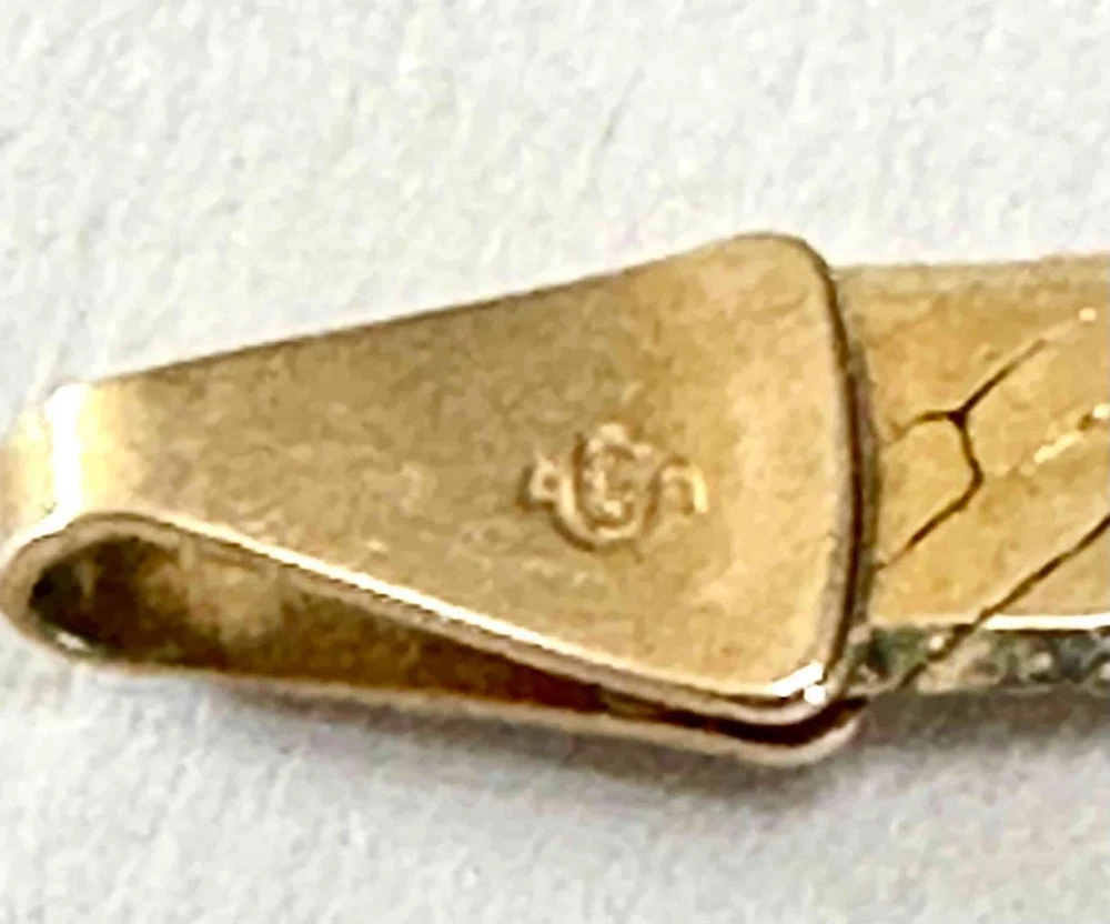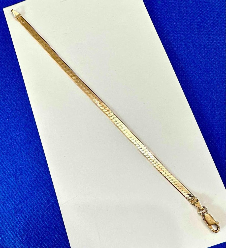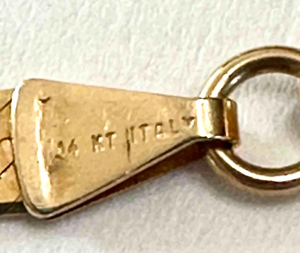 Very attractive 14k yellow gold signed aCa (Creazioni) Italy Herringbone Bracelet. It has one of the issues common with herringbone jewelry, a very slight kink or wrinkle. It only has one. It is still a beautiful jewelry piece and quite wearable. It measures total length 7", is 4mm wide and weighs 4.25 grams. A great bargain and beautiful addition to any jewelry box! Please examine the attached photos they describe this listing better than any words. Click on any photo to 'super size' them. We'll be happy to answer any questions. We will wrap securely and mail it in a shipping box. 14k Signed aCa (Creazioni) Italy Herringbone Bracelet 7" Long 4.25 Gram (Kink) 14k Signed aCa (Creazioni) Italy Herringbone Bracelet 7" Long 4.25 Gram (Kink) Click images to enlarge Description Very attractive 14k yellow gold signed aCa (Creazioni) Italy Herringbone Bracelet. It has one of the issues common with herringbone jewelry, a very slight kink or wrinkle. It only has one. It is still a beautiful jewelry piece and quite wearable. It measures total length 7", is 4mm wide and weighs 4.25 grams. A great bargain and beautiful addition to any jewelry box! Please examine the attached photos they describe this listing better than any words. C lick on any photo to 'super size' them. We'll be happy to answer any questions. We will wrap securely and mail it in a shipping box. RC Red 2023 Payment eBayPay accepts many forms of payment, including PayPal. COMBINED SHIPPING - please place items in eBay's shopping cart. When you are done shopping in our store, click on the cart and Request an Invoice. For jewelry items, you pay shipping on one item, plus 25¢ shipping for each additional item. Payment is expected within 4 days of the sale. If you need additional time to pay, we will be happy to work with you IF YOU CONTACT US. If you do not contact us, the item will be reported to eBay as unpaid. Sales Tax: if your state has a law requiring sales tax be paid on items purchased on the internet, eBay will add that tax to your total purchase price. *** International Buyers ~ Please Note: Import duties, taxes and charges are not included in the item price or shipping charges. These charges are the buyer's responsibility. Please check with your country's customs office to determine what these additional costs will be prior to bidding/buying. These charges are normally collected by the delivering freight (shipping) company or when you pick the item up - do not confuse them for additional shipping charges. We do not mark merchandise values below value or mark items as "gifts" and will not send items prohibited by your country's import laws. US and International government regulations prohibit such behavior. Please DO NOT ASK us to lie. Shipping SHIPPING TIME: Jewelry is shipped next business day. Larger items within 3 business days. If you need an item sooner, please let us know and we will expedite shipping. SHIPPING CHARGE: When we use eBay's Calculated Shipping, we determine the box size and weight and add shipping insurance, then eBay calculates the cost to ship. Smaller items are shipped at a flat rate, shown on the listing. We try to price our items below value to allow for shipping charges. Our guarantee to you: We will package your item to shipping industry standards so it will have the best possible chance of reaching you safely. As you can see from our feedback, we put our customer's satisfaction first . We work hard to gain a 5-star rating. If we have failed to meet this goal, PLEASE contact us and give us the opportunity to add you to our "Totally Satisfied" customer list. Terms of Sale Please note that our photos are part of our description and that vintage or pre-owned items will usually have some signs of wear. Please ask if you have questions about any item. We will accept returns for the following reasons: On items listed as ACCEPT RETURNS - Changed mind, Doesn't fit, Don't like it, Color is not what I expected On ALL items under "eBay guarantee" policy - Wrong item sent, Not as described, Arrived broken, etc. Please contact us within 4 days of receipt of the item if you intend to return it. Items being returned must be mailed back no later than 30 days from date of sale. Item must be in ORIGINAL CONDITION with no alterations or damage received while in your possession. Securely wrap items along with any display or presentation boxes, using bubble wrap, and place them in the original box or a sturdy substitute for mailing. If the listing shows we pay return shipping, eBay will ask us to send you a return mailing label and will notify you where to find it for printing. If the listing shows you pay for return shipping, we provide you with our mailing address through eBay. All items are under eBay guarantee and if they are not as described or we mailed the wrong item, we pay the shipping both ways. (Please note that buyers are responsible for reading descriptions and looking at photos. If the item is not as expected because you did not look at the entire listing, it may be returned, but you pay the postage.) Refunds will be made through eBay's Payment system, to the account, card or service that you used in the purchase. Please contact us if you feel an item was not as advertised so we can turn a negative situation into a positive solution. WE DO NOT ACCEPT RETURNS ON CLOTHING or Soft Goods . About Us This husband and wife team have been selling on eBay since 2006. We live in the Ohio Valley where many of the best glass houses of the 1900's were located and sold vintage elegant glassware for many years. We currently offer vintage and other nice jewelry, along with collectibles and assorted other items. We find many treasures at local estate auctions and pass them on to you, our buyer. We are continually learning about vintage jewelry, glass, china and other collectible items and we appreciate your comments and questions. Contact Us Please contact us through E-Bay's link "Ask seller a question". If you have a que