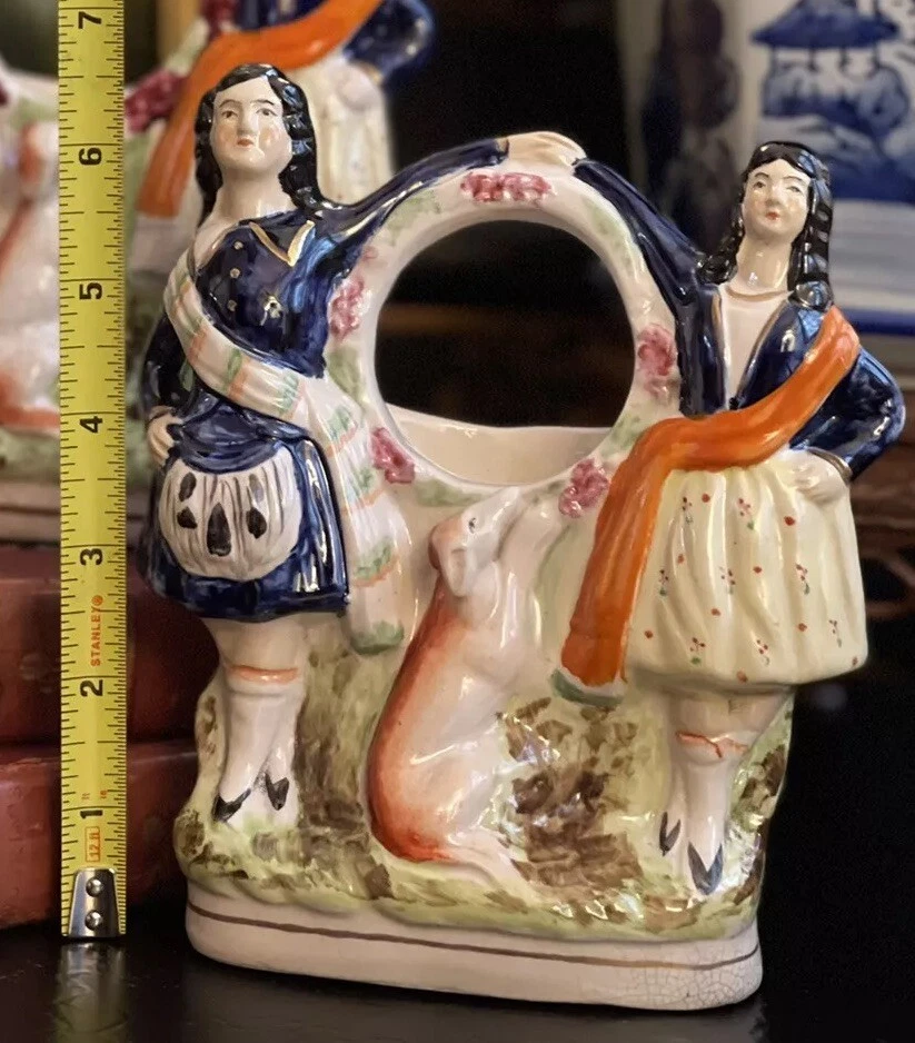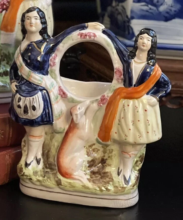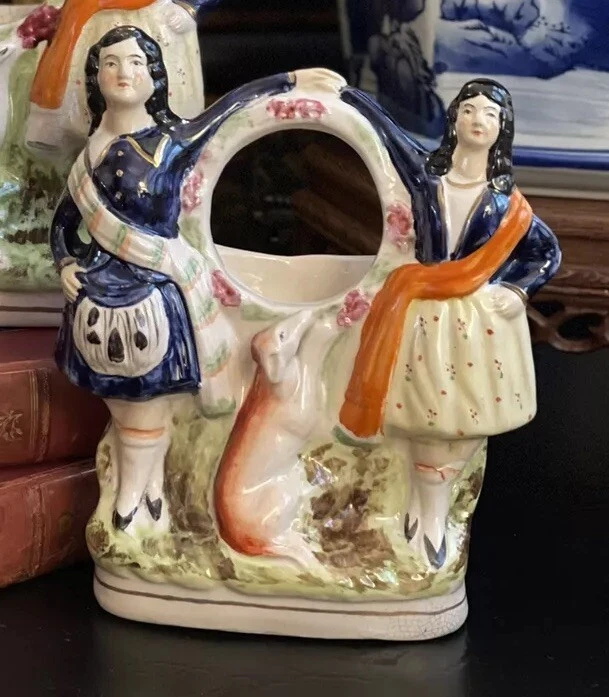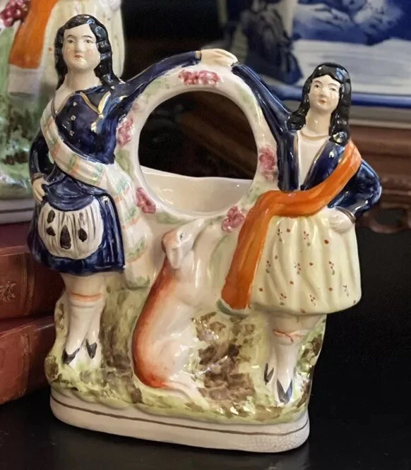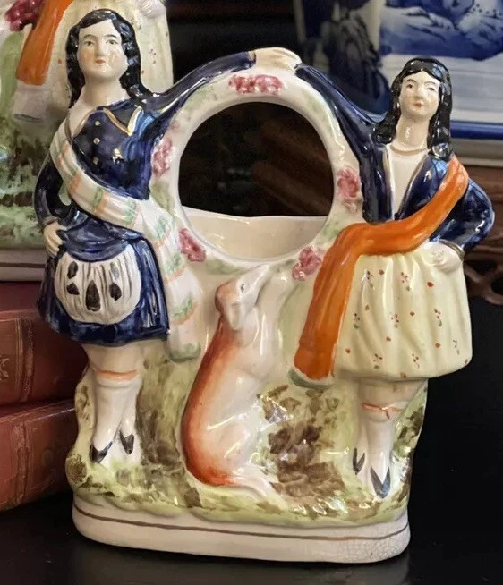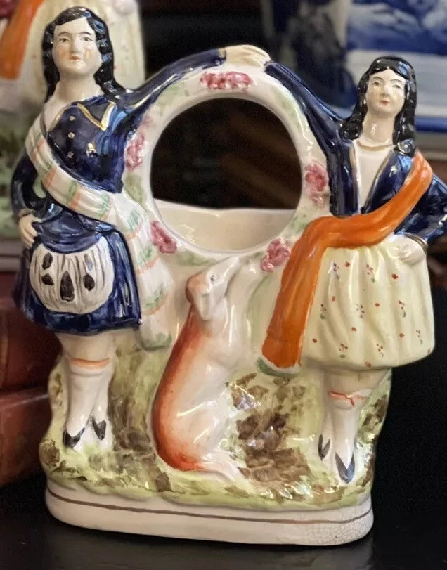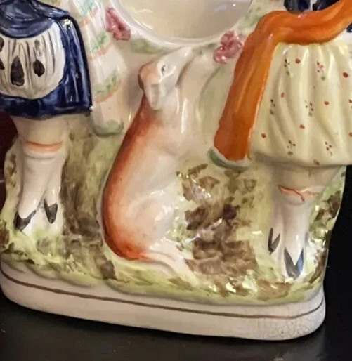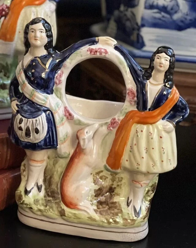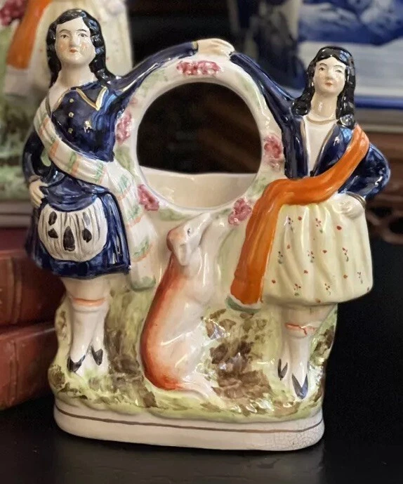 Product Line: English Country Life Figures Theme: English Highland Figures with Dog Pattern: Traditional Type: English Country Life Mantle Pocket Watch Holder Style: Traditional English Item Width: 5.75” Features: Hand Painted Color: Multi-Color Number of Items in Set: Two-Piece Antique: Yes Brand: Staffordshire Set Includes: One Focal Piece Material: English Porcelain Handmade: Yes Shape: Figural Group with Hunt Dog in Relief Item Length: 2.5” Item Height: 6.5” Origin: Staffordshire Original/Licensed Reproduction: Original Production Technique: Modelled Occasion: All Occasion Decorative Arts Country/Region of Manufacture: United Kingdom Finish: Glaze Era: Victorian (1837-1900) Production Style: Art Pottery Original/Reproduction: Original