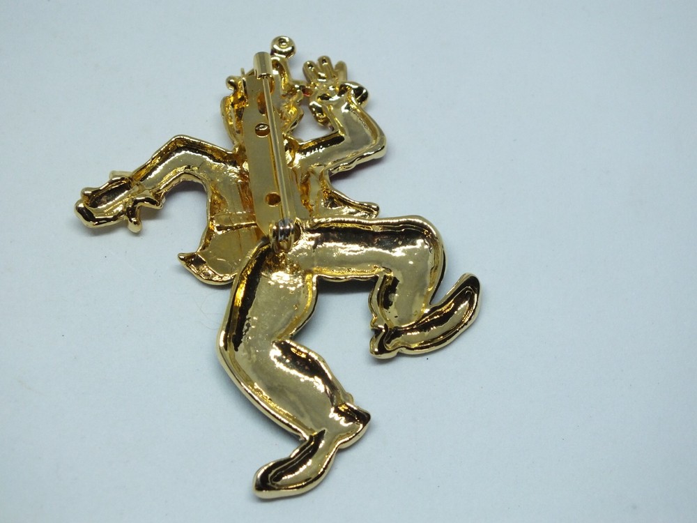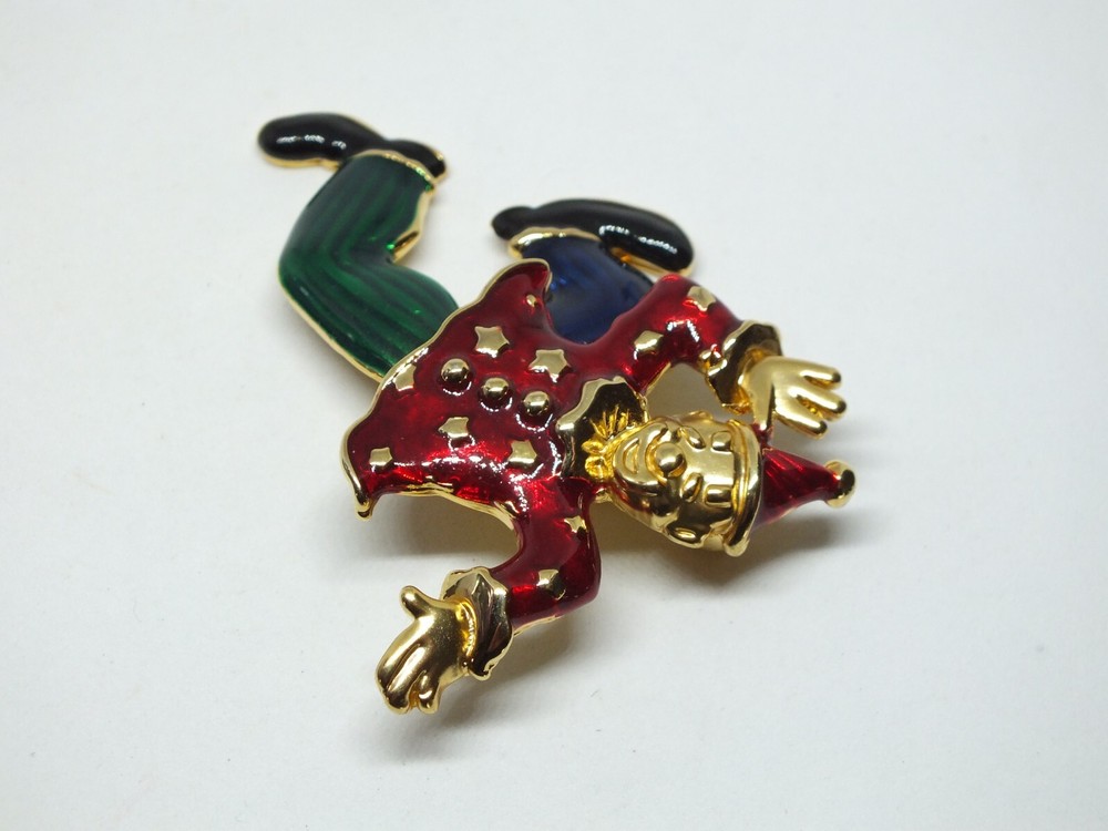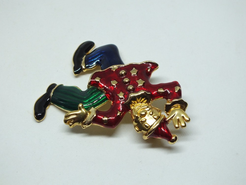 For your consideration is a beautiful brooch or pin done in a gold tone adorned with colorful enamel in the shape of a clown with swinging legs measuring 2 1/2 x 2 inches in size. Very good gently used condition. Comes with a gift box. Picture does not do justice. Thanks for looking! FREE shipping to the United States! Discounted shipping rates for international buyers purchasing multiple items. KEEP watching I am always adding linens and have hundreds of pieces of jewelry I am trying to get listed.