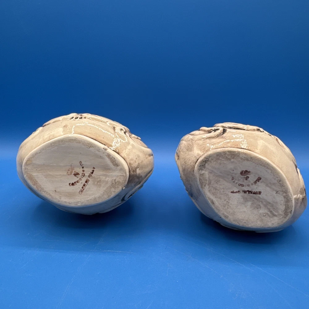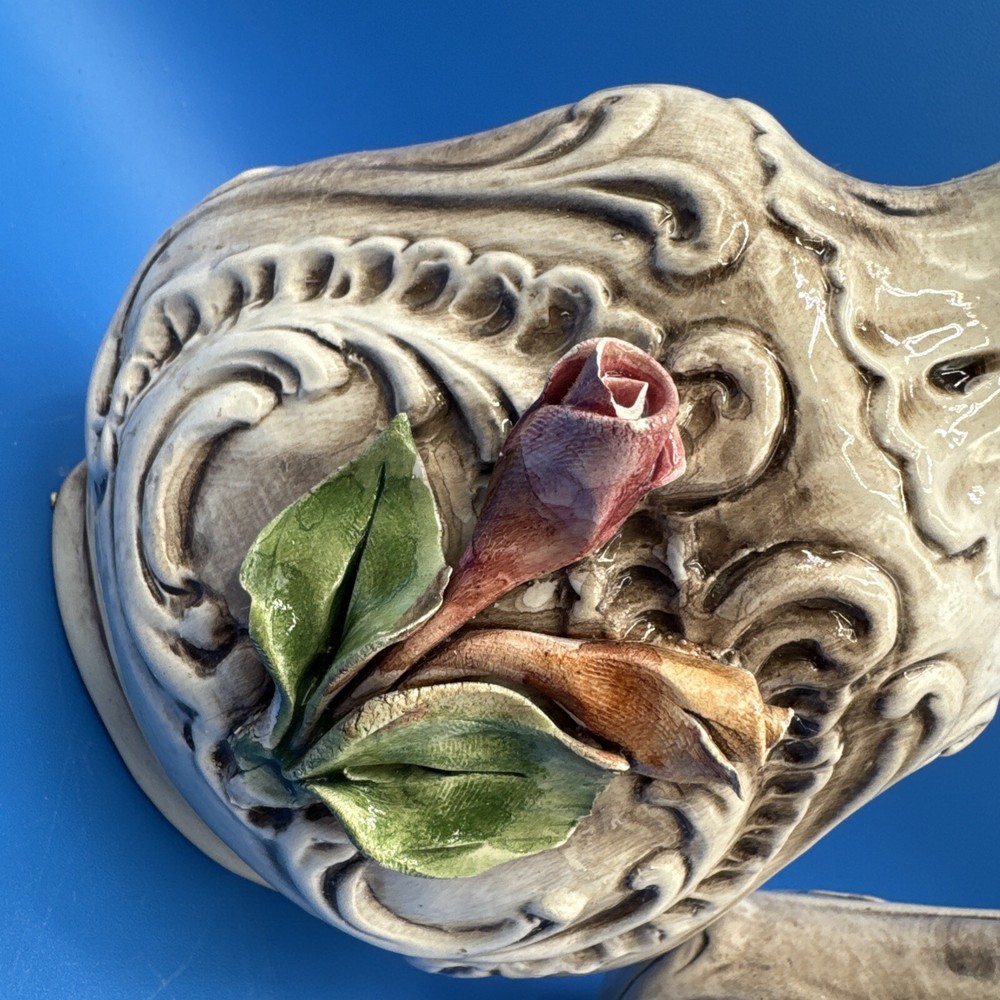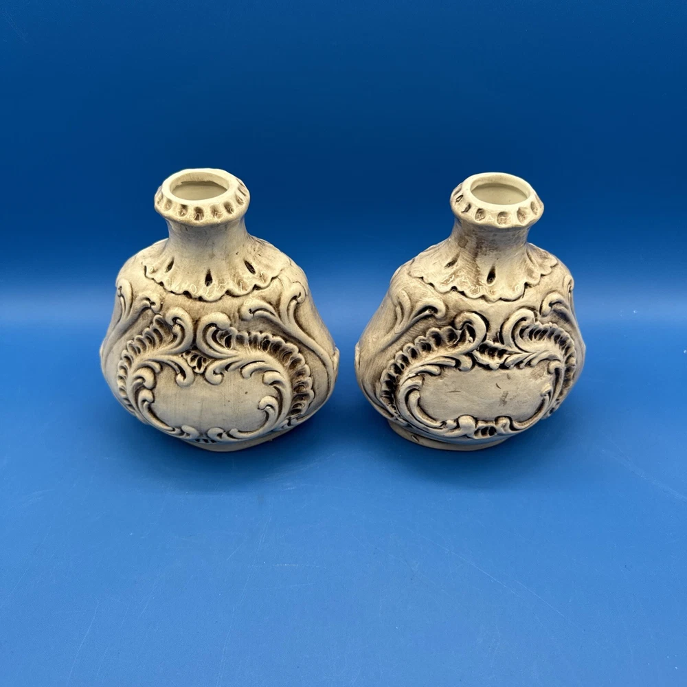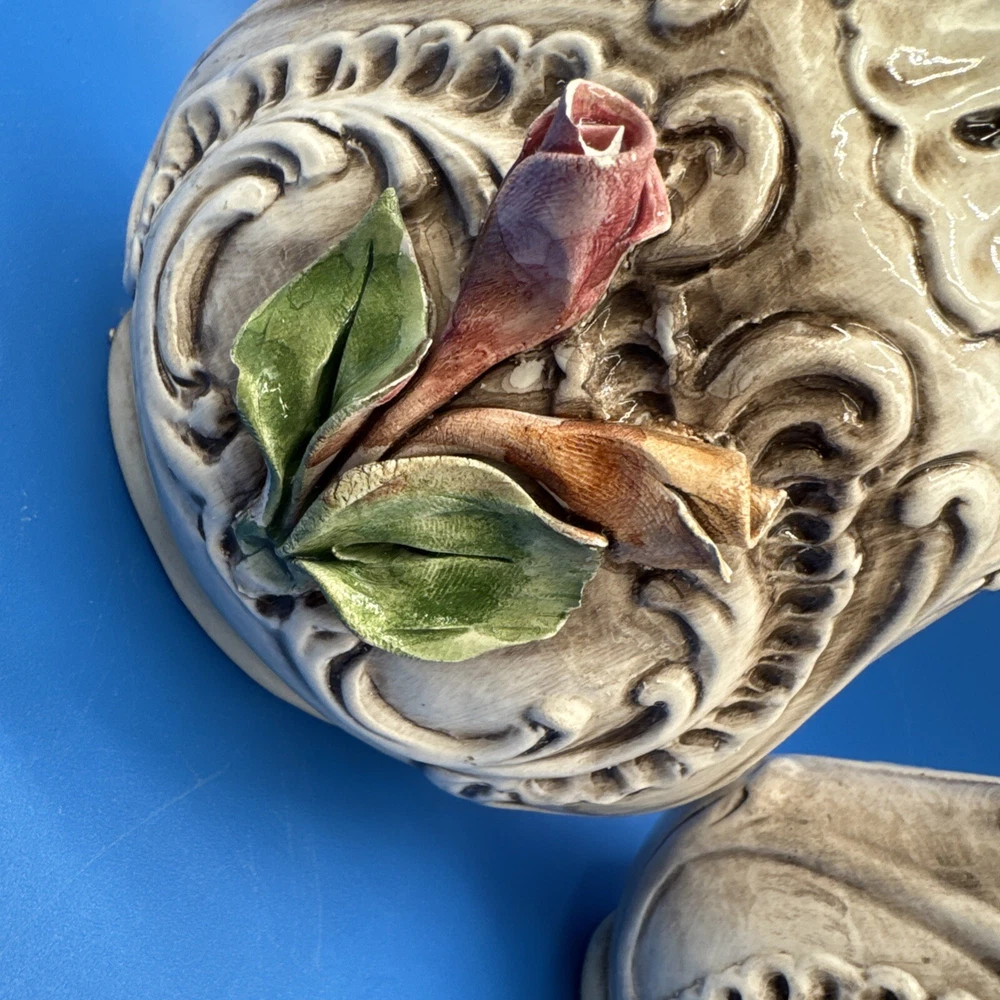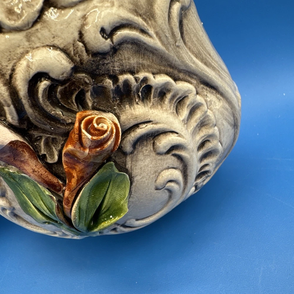 This is a set of two stunning vintage porcelain vases from Capodimonte, Italy. The vases feature a beautiful floral pattern and are crafted from porcelain. They would make a lovely addition to any home decor with their intricate design and Italian craftsmanship. Pre-owned condition. No original box. Vases are 6 inches tall. The flowers have some small chips. Please check the pictures carefully as part of the description. Feel free to ask questions if you need more information before you buy it. Thank you for your interest B-10
