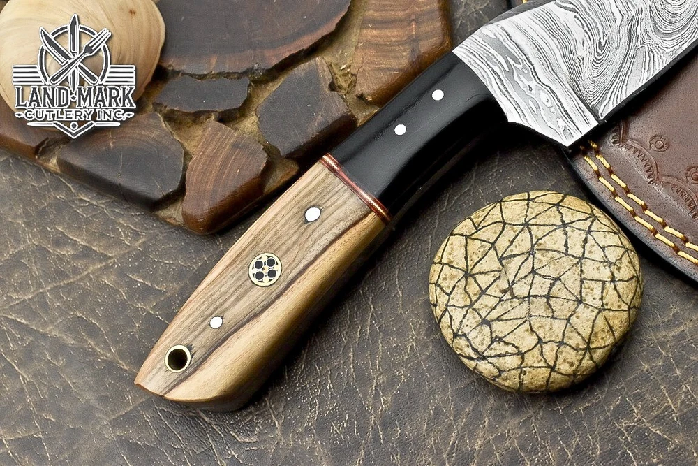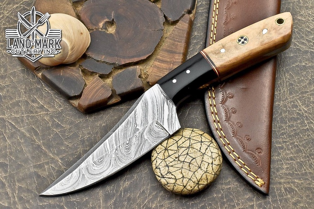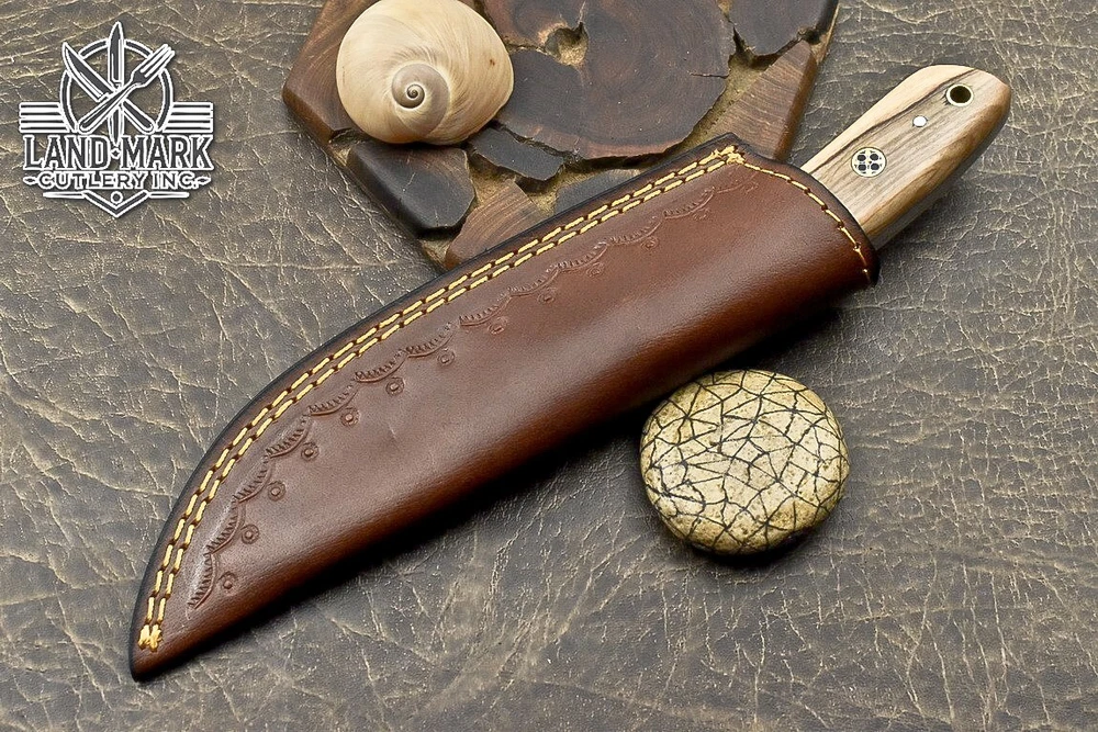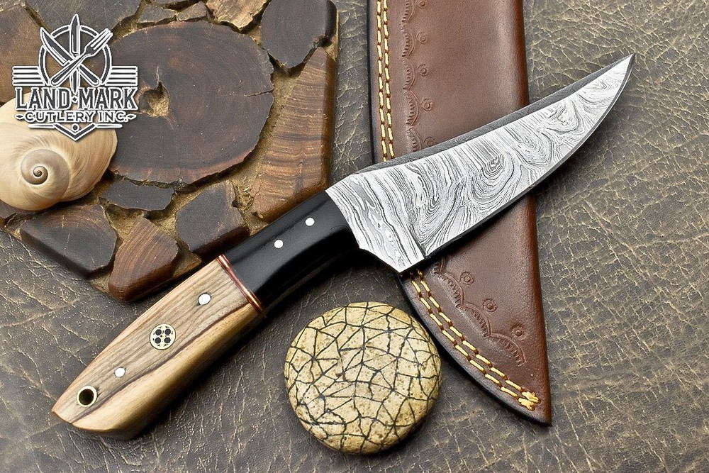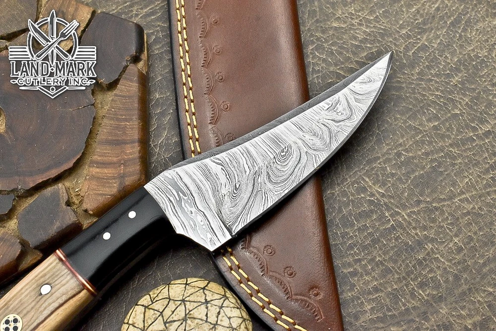 Stunning Custom-Made Damascus Steel Hunting Skinner Knife with Olive Wood Handle