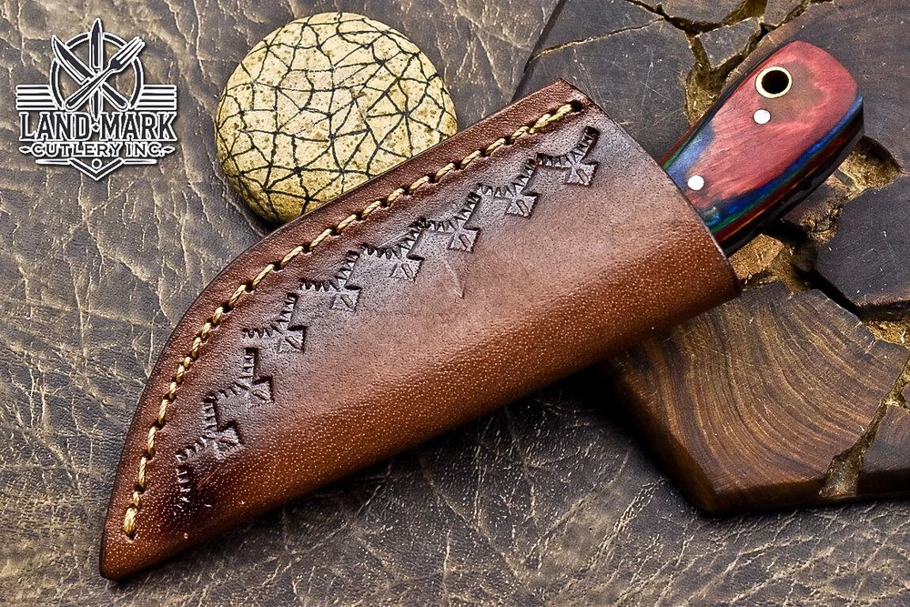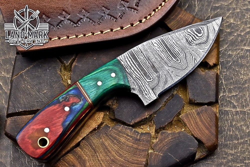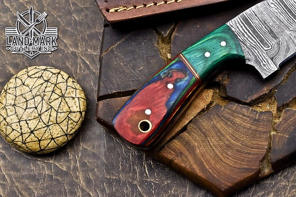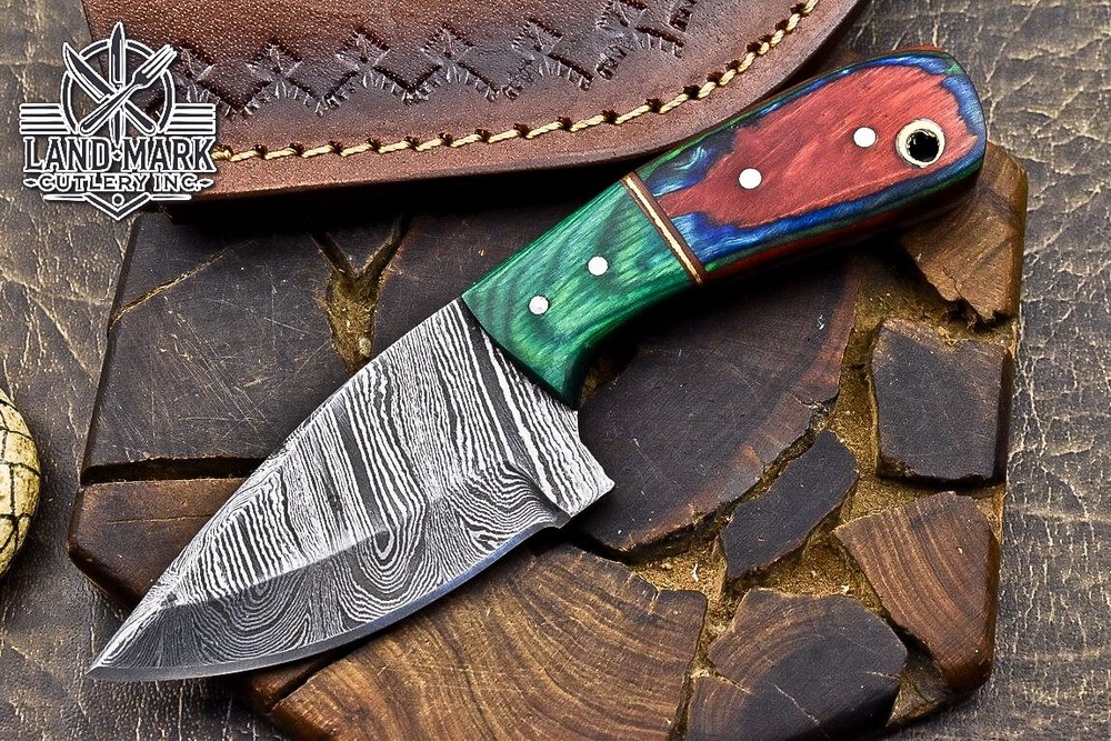 Custom Hand Made DAMASCUS STEEL HUNTING KNIFE WITH PAKKA WOOD HANDLE We offer a shipping discount for More then one purchased . And discount will be apply on combine invoice, Discount will not apply on separate payment. ITEM DETAILS OVER ALL LENGTH 3.0 inches long (Approx) HANDLE LENGTH 1.5 inches long (Approx) BLADE LENGTH 1.5 inches long (Approx) BLADE HARDNESS 58-60 HRC Which Holds The Sharp Edge For Long Time. HANDLE PAKKA WOOD COVER LEATHER SHEATH This Awesome custom made KNIFE has a nice hand forged with the combination of 4340 & 1080 steel. HOW OUR DAMASCUS IS MADE: All our Damascus is real and not just an acid etch. Damascus is a mixture of 1080HC and 4340 nickel carbon. You heat them up together and then fold the bar over and over to get the desired layers, ours are 396 layers. Then you burn the blade in acid, and it turns the nickel satin color and the high carbon turns blackish gray. This is how the layers are exposed to show the layers of the new steel created coined "Damascus". All Damascus is acid etched to show the layers. If you high polish the metal it will be shinny satin like all steels. Only after you burn the sides of the blade with acid do you see the layers of the two steels. Makes sense? After we make our knives we high polish the handles and put an edge on the blade. The high polishing buffs off the acid burned layer of the handle, and the blade edge is sharpened and the acid burned edge becomes satin. You can re-burn the tang of the blade near the handles and the edge of the blade and it will show the layers once more. All our knives are hand made, durable and unique ***** YOU WILL RECEIVED THE SAME KNIFE Qality Standards Our Damascus blades are made from high quality non-stainless steels which rival or exceed any Damascus blade made from the 10 series with 4340. Our Damascus combination has taken years to perfect and has been tested under a variety of application which will offer professional performance in categories of toughness, strength (lateral stress) and edge honing and holding ability. In a 5 spot Rockwell test our blades will average near or close to 58 which offers a perfect balances between its toughness and strength.Our blades due to carbon content need to be regularly treated with wax and/or 3 in 1 oil to maintain its superior quality. Questions if you have any question feel free to send us message we aim to answer all questions within 24 hours Feedback If you are not satisfied with our service please contact us before leaving any negative or natural feedback. We will resolve all issues as quickly as possible. Disclaimer We are not responsible for any injuries associated with the use of our tools. Our products are intended for legal use only by responsible buyers. Therefore, we will not sell our products to anyone under the age of 18. Before bidding please check your country laws as some countries Custom don't allow this. If your purchase is held by Custom Authorities in your country/State we will not be responsible for that and no refund will be issued Shipping We offer a 20% shipping discount for More then one purchased . And discount will be apply on combine invoice, Discount will not apply on separate payment We ship within 24 hours after receiving complete payment but this can be delayed due to week ends or Governments and Religious Festivals . . This is beyond our control and we apologize for this inconvenience. Precautions Our Tools are very sharp so open and use them very carefully We are not responsible for any injuries associated with the use of our tools Tips to Care knife 1. NEVER STORE YOUR KNIFE FOR LONG TIME IN LEATHER SHEATH. 2. LEATHER CAN ABSORB WATER, WHICH WILL RUST THE KNIFE. 3. ALWAYS CLEAN THE BLADE AFTER USING WITH OIL OR WAX