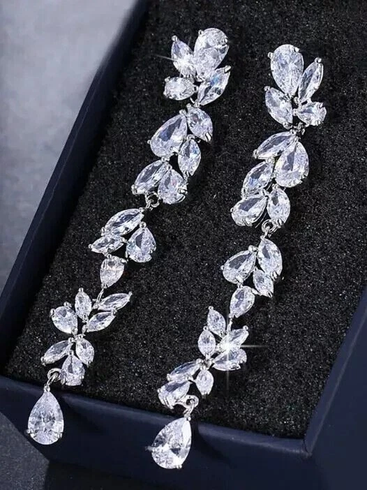 Base Metal: White Gold Plated Metal Purity: 925 Handmade: Yes Main Stone: Simulated Diamond Wholesale: Yes Antique: No Cut Grade: Excellent Style: Dangle/Drop Seller Warranty: Yes Number of Gemstones: 00 UPC: Does Not Apply Country of Origin: United States Secondary Stone: NA Shape: Round Theme: Beauty Closure: Push Back Main Stone Treatment: Not Enhanced Era: Undated Personalize: No Setting Style: Prong Metal: Sterling Silver Vintage: No Seller Notes: ““Freshly made on order with quality and buyer satisfaction. No old stocks.”” Signed: No Features: Engraved Main Stone Creation: Simulated Ear Area: Lobe Type: Earrings Color: White Main Stone Color: White Country/Region of Manufacture: India Occasion: Anniversary, Birthday, Christening, Christmas, Confirmation/Communion, Engagement, Graduation, Mother's Day, Valentine's Day, Wedding MPN: NA Brand: sp_jewels Customized: Yes Material: Stone, Metal Main Stone Shape: Pear gtin13: Does Not Apply