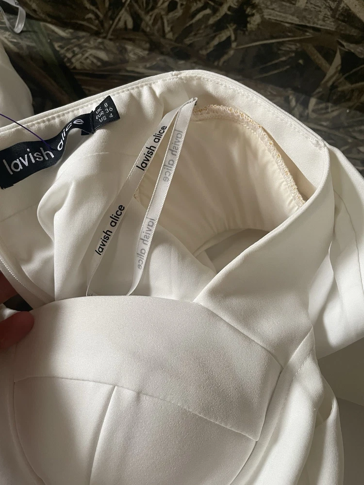 A show-stopping, ultra-modern white jumpsuit that looks straight off a runway. By Lavish Alice β a brand known for bold, statement silhouettes. β¨ Attached cape-style sleeves (sewn-in, structured design) β¨ Beautifully tailored fit that highlights the waist β¨ Premium structured fabric that holds its shape β¨ Almost new, excellent condition This is a statement piece β no extra styling needed. It speaks for itself π€ Perfect for: β’ wedding or civil ceremony β’ graduation β’ photoshoot β’ formal events β’ elegant evening occasions Color: Ivory / Off-white Size: UK 8 / EU 36 / US 4 Condition: Like new π₯ Eye-catching, modern, and incredibly chic.
