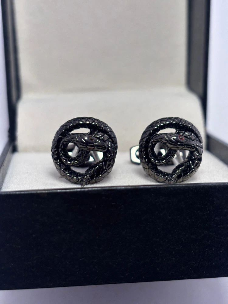 Stunning Montblanc Men's Snake Black Color Cufflinks Set