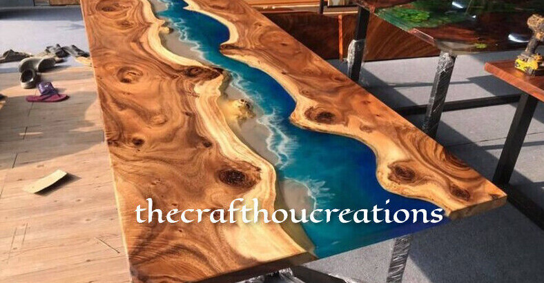 love the table, a true work of art. Price to quality relationship very high. There are a lot of wanna bes out there, but few true craftsmen in this space, and they are craftsmen. Lots of back and forth to get what we desired.. nonlinear edges, curvy river, branch circles within wood, blue resin covering only 20% of table overall, specific length and width, leg style. Shipped via air very quickly too. Two thumbs up!