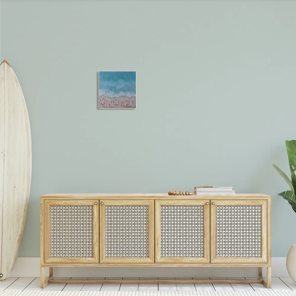 Stupell Abstract Ocean Shore Painting Beach Umbrella Coast Blue 12 x 12