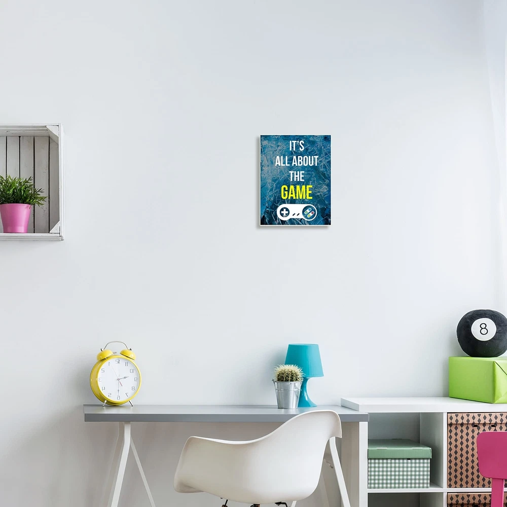 Proudly made in the USA, all of our wall plaques start off as high quality lithograph prints that are then mounted on durable 0.5 inch thick MDF wood. Each piece is hand finished and comes with a fresh layer of foil on the sides to give it a crisp clean look. It arrives ready to hang with no installation required, and comes with sturdy clear corners to keep it from damaging in transit.Features: Wall Art is Ready to Hang - No Installation or Hardware Needed. For Easy Set Up Lean or Layer Artwork on Shelf or Against Wall.All of our wall plaques start off as high quality lithograph prints that are then mounted on durable 0.5 inch thick MDF wood. Each piece is hand finished and comes with a fresh layer of foil on the sides to give it a crisp clean look. Made In USA.Artwork Relates To: It's all Free Shipping Over $49.99* Details Stupell All About The Game Vintage Controller Gamer Sign Wood Wall Art, Design Product Description: Proudly made in the USA, all of our wall plaques start off as high quality lithograph prints that are then mounted on durable 0.5 inch thick MDF wood. Each piece is hand finished and comes with a fresh layer of foil on the sides to give it a crisp clean look. It arrives ready to hang with no installation required, and comes with sturdy clear corners to keep it from damaging in transit. Features: Wall Art is Ready to Hang - No Installation or Hardware Needed. For Easy Set Up Lean or Layer Artwork on Shelf or Against Wall. All of our wall plaques start off as high quality lithograph prints that are then mounted on durable 0.5 inch thick MDF wood. Each piece is hand finished and comes with a fresh layer of foil on the sides to give it a crisp clean look. Made In USA. Artwork Relates ToIt's all about the game; Video games; Controller Design by Annie Warren
