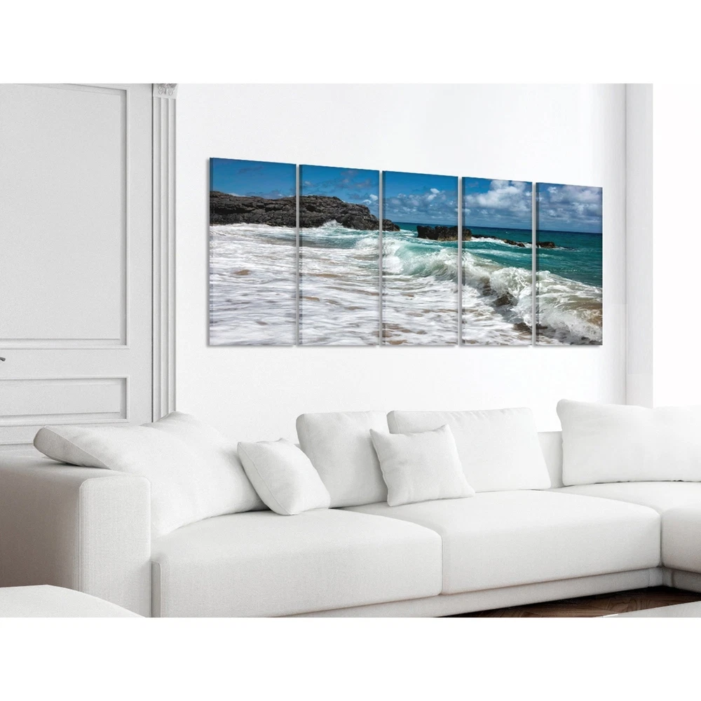 Proudly made in the USA! Our canvas triptychs are our est and most distinguished offering yet! Each panel is mounted on sturdy 1.5 inch frame. Our vivid canvas is hand cut, then stretched and comes ready to hang. At this size, and with multiple pieces, it is sure to be a focal point of the room. Hand Finished & Ready to Hang. Dimensions: 10 x 1.5 x 21 Inches. Our Canvas is Hand Stretched on a 1.5 Inch Thick Wood Frame. 5 Piece Set Free Shipping Over $49.99* Details Stupell Breaking Waves Coastal Scene' 5-piece Stretched Canvas Wall Art Set - 50 Product Description: Proudly made in the USA! Our canvas triptychs are our est and most distinguished offering yet! Each panel is mounted on sturdy 1.5 inch frame. Our vivid canvas is hand cut, then stretched and comes ready to hang. At this size, and with multiple pieces, it is sure to be a focal point of the room. Hand Finished & Ready to Hang. Dimensions10 x 1.5 x 21 Inches. Our Canvas is Hand Stretched on a 1.5 Inch Thick Wood Frame. 5 Piece Set