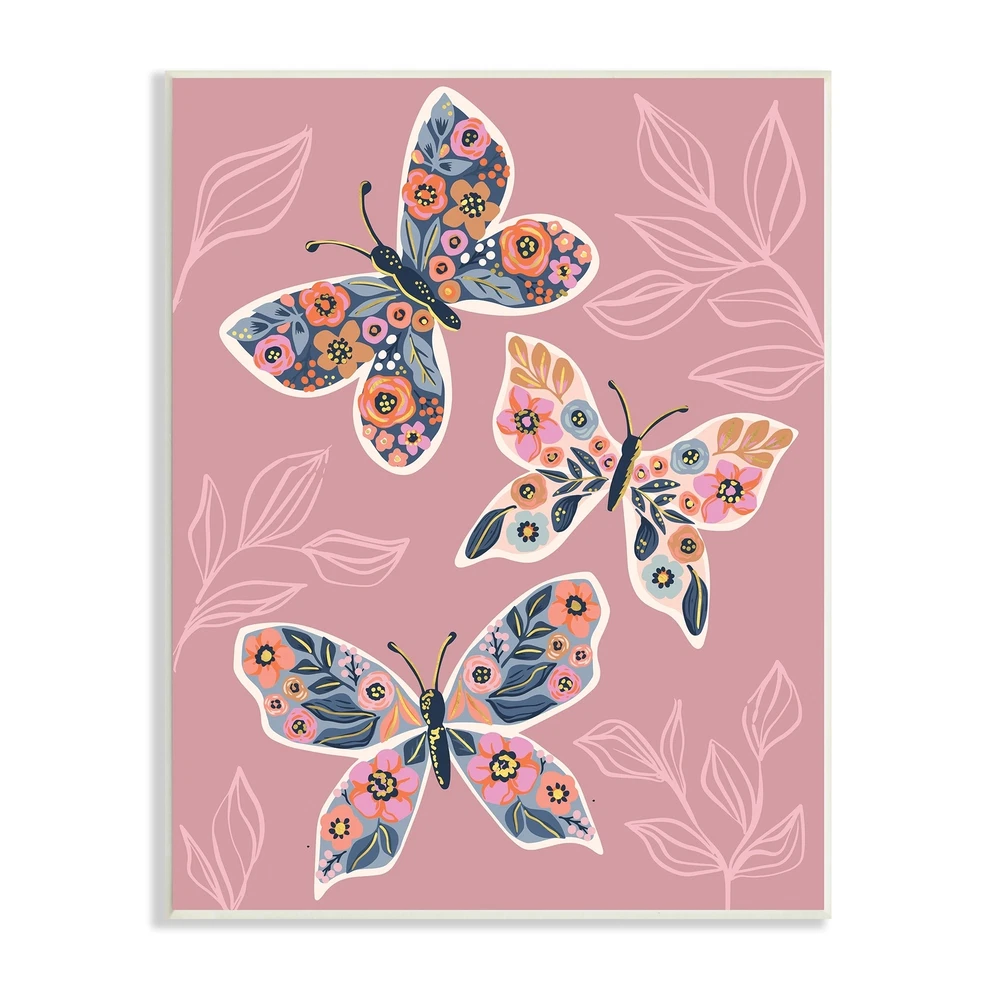 Proudly made in the USA, all of All of our wall plaques start off as high quality lithograph prints that are then mounted on durable 0.5 inch thick MDF wood. Each piece is hand finished and comes with a fresh layer of foil on the sides to give it a crisp clean look. It arrives ready to hang with no installation required, and comes with sturdy clear corners to keep it from damaging in transit.Features:Wall Art is Ready to Hang - No Installation or Hardware Needed. For Easy Set Up Lean or Layer Artwork on Shelf or Against Wall.All of our wall plaques start off as high quality lithograph prints that are then mounted on durable 0.5 inch thick MDF wood. Each piece is hand finished and comes with a fresh layer of foil on the sides to give it a crisp clean look. Made In USA.Artwork Ideal for any Free Shipping Over $49.99* Details Stupell Chic Floral Butterfly Wing Patterns Pink Plant Leaves Wood Wall Art Product Description: Proudly made in the USA, all of All of our wall plaques start off as high quality lithograph prints that are then mounted on durable 0.5 inch thick MDF wood. Each piece is hand finished and comes with a fresh layer of foil on the sides to give it a crisp clean look. It arrives ready to hang with no installation required, and comes with sturdy clear corners to keep it from damaging in transit. Features: Wall Art is Ready to Hang - No Installation or Hardware Needed. For Easy Set Up Lean or Layer Artwork on Shelf or Against Wall. All of our wall plaques start off as high quality lithograph prints that are then mounted on durable 0.5 inch thick MDF wood. Each piece is hand finished and comes with a fresh layer of foil on the sides to give it a crisp clean look. Made In USA. Artwork Ideal for any Living Room, Den, Entryway, Bedroom, Office, Kitchen or Bathroom. Design by Caroline Alfreds