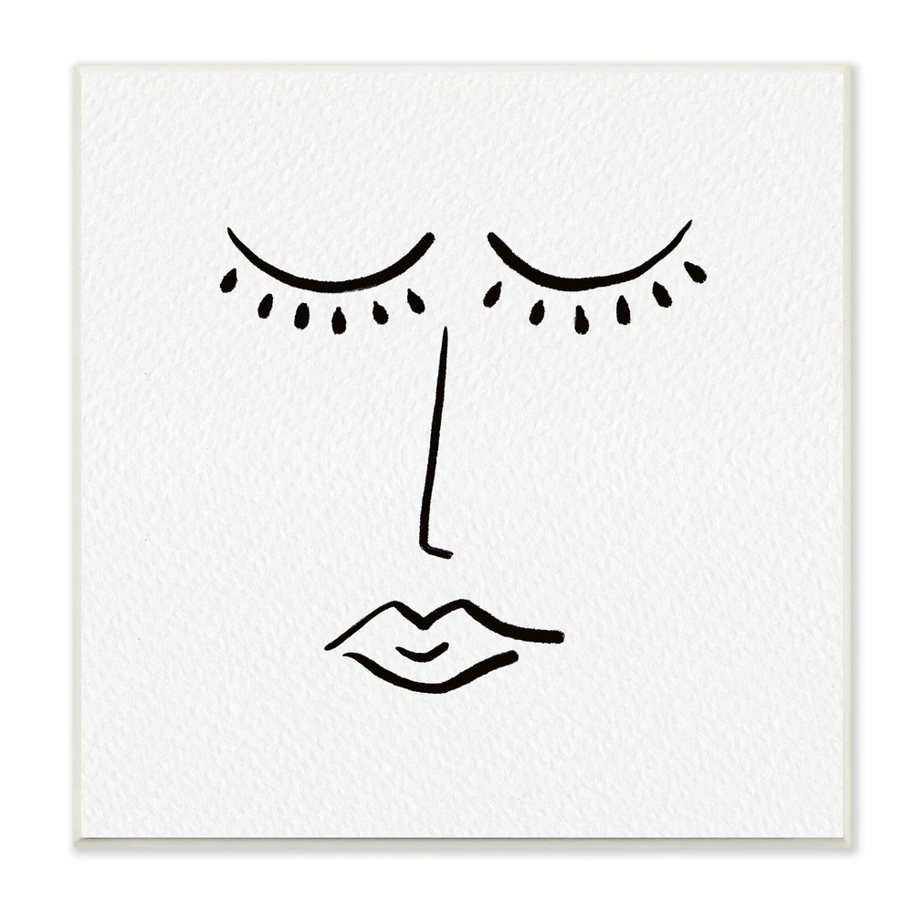 Stupell Closed Eyes Lips Minimal Face Doodle Style Wood Wall