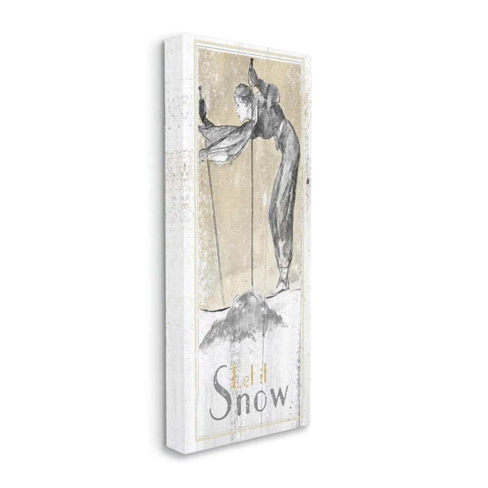 Stupell Let It Snow Vintage Skiing Print Design Canvas Wall