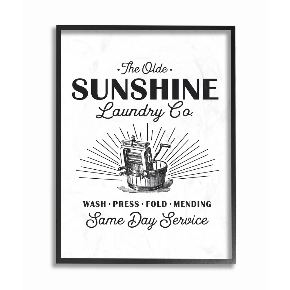 First came wood, then came canvas, and now we introduce our 'Framed Giclee Textured Wall Art.' 100% Made in USA as always, we start with a giclee lithograph mounted on wood, and finish it with a texturized brush stroke finish. We didn't stop there though as we fit it within a 1.5 inch thick ebony wood grain frame to add depth and diminsion. Ready to hang. Stupell has been providing quality wall art and decorative accessories for over forty years. Offering wall art and home décor in a variety of themes, mediums and sizes. Stupell's products range from canvas wall art, wood wall art, and framed giclée art. No matter the style, our modern, contemporary, traditional, or baby wall art and home decor is crafted with the utmost consideration and care.Features:Wall Art is Ready to Hang - No Free Shipping Over $49.99* Details Stupell Olde Sunshine Laundry Vintage Sign Framed Giclee Texture Art Product Description: First came wood, then came canvas, and now we introduce our 'Framed Giclee Textured Wall Art.' 100% Made in USA as always, we start with a giclee lithograph mounted on wood, and finish it with a texturized brush stroke finish. We didn't stop there though as we fit it within a 1.5 inch thick ebony wood grain frame to add depth and diminsion. Ready to hang. Stupell has been providing quality wall art and decorative accessories for over forty years. Offering wall art and home décor in a variety of themes, mediums and sizes. Stupell's products range from canvas wall art, wood wall art, and framed giclée art. No matter the style, our modern, contemporary, traditional, or baby wall art and home decor is crafted with the utmost consideration and care. Features: Wall Art is Ready to Hang - No Installation or Hardware Needed. For Easy Set Up Lean or Layer Artwork on Shelf or Against Wall. Our giclée prints are carefully mounted on a durable MDF backing, and then perfectly finished in a 1.5 inch thick woodgrain frame. Frame colors include black, gray farmhouse and white. Made In USA. Artwork Ideal for any Living Room, Den, Entryway, Bedroom, Office, Kitchen or Bathroom. Design by Lettered and Lined