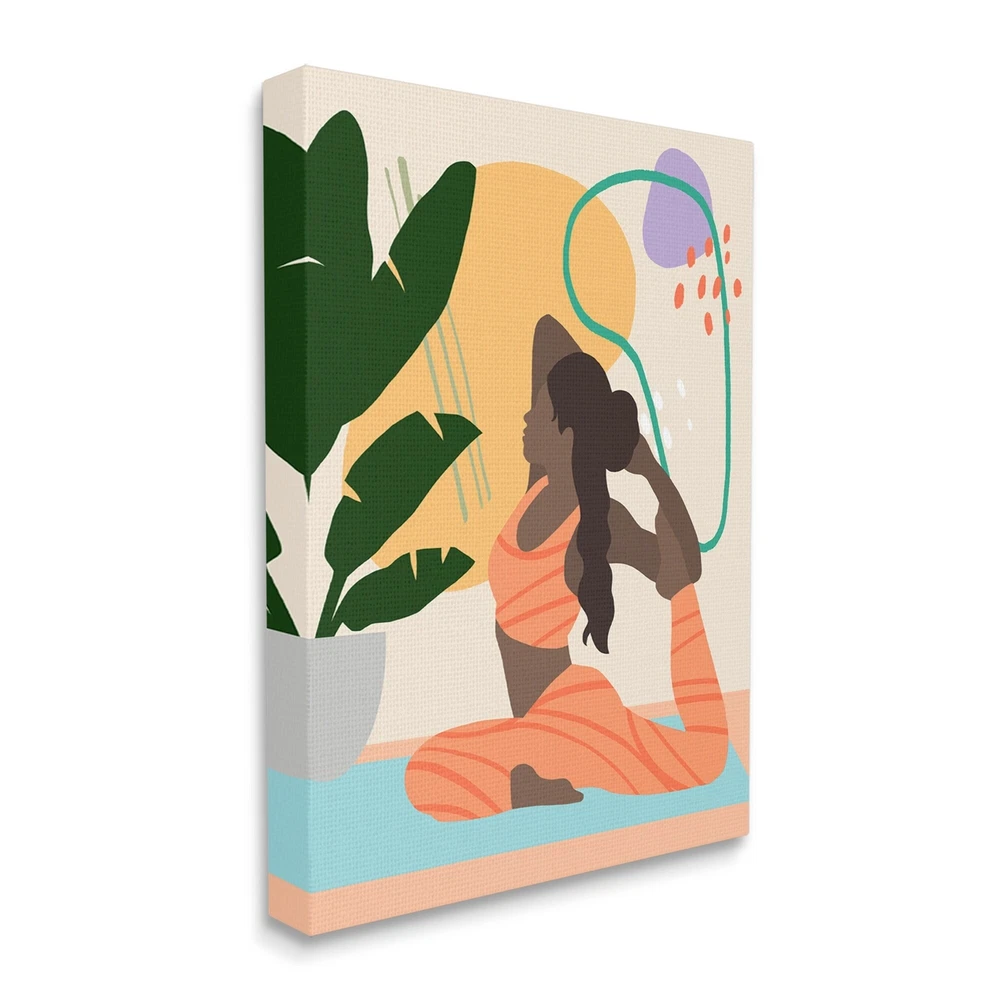 Stupell Person Working Out Yoga Plant Modern Design Canvas