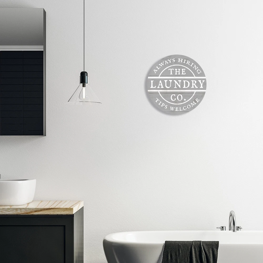 Proudly made in the USA, all of our wall plaques start off as high quality lithograph prints that are then mounted on durable 0.5 inch thick MDF wood. Each piece is hand finished and comes with a fresh layer of white foil on the sides to give it a crisp clean look. Art arrives ready to hang with no installation required.Features:Add a unique touch to any home with our Circular Shaped Wall Art. All of our wall plaques start off as high quality lithograph prints that are then mounted on durable 0.5 inch thick MDF wood. Each piece is hand finished and comes with a fresh layer of foil on the sides to give it a crisp clean look. Made In USA.Wall Art is Ready to Hang - No Installation or Hardware Needed. For Easy Set Up Use A Picture Stand to Lean or Layer Artwork on Shelf or Against Free Shipping Over $49.99* Details Stupell Rustic Laundry Co. Sign Tips Welcome Always Hiring, 12 x 12, Design By Product Description: Proudly made in the USA, all of our wall plaques start off as high quality lithograph prints that are then mounted on durable 0.5 inch thick MDF wood. Each piece is hand finished and comes with a fresh layer of white foil on the sides to give it a crisp clean look. Art arrives ready to hang with no installation required. Features: Add a unique touch to any home with our Circular Shaped Wall Art. All of our wall plaques start off as high quality lithograph prints that are then mounted on durable 0.5 inch thick MDF wood. Each piece is hand finished and comes with a fresh layer of foil on the sides to give it a crisp clean look. Made In USA. Wall Art is Ready to Hang - No Installation or Hardware Needed. For Easy Set Up Use A Picture Stand to Lean or Layer Artwork on Shelf or Against Wall. Artwork Ideal for any Living Room, Den, Entryway, Bedroom, Office, Kitchen or Bathroom. Design by Lil' Rue